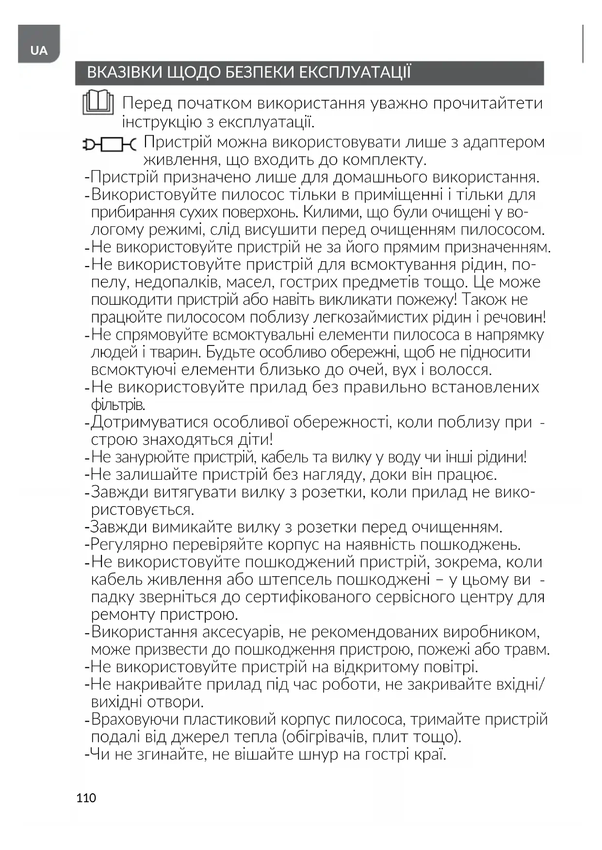 ВКАЗІВКИ ЩОДО БЕЗПЕКИ ЕКСПЛУАТАЦІЇ Перед початком використання уважно прочитайтети інструкцію з експлуатації. Пристрій можна використовувати лише з адаптером живлення, що входить до комплекту. - Пристрій призначено лише для домашнього використання.