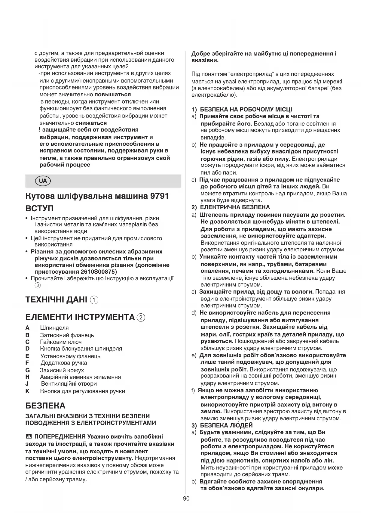 a) Віддавайте свій прилад на ремонт лише кваліфікованим фахівцям та лише з використанням оригінальних запчастин. Це забезпечить безпечність приладу на довгий час. ПРАВИЛА ТЕХНІКИ БЕЗПЕКИ ДЛЯ КУТОВИХ ШЛІФУВАЛЬНИХ МАШИН
