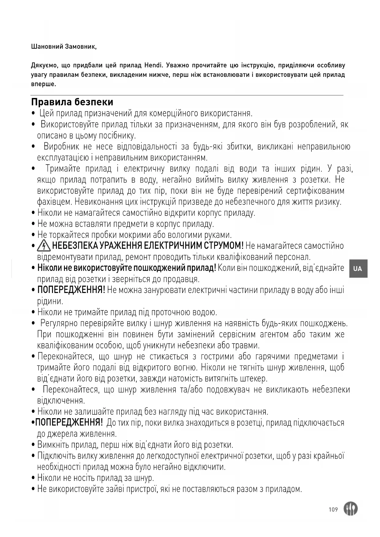 Шановний Замовник, Дякуємо, що придбали цей прилад Hendi. Уважно прочитайте цю інструкцію, приділяючи особливу увагу правилам безпеки, викладеним нижче, перш ніж встановлювати і використовувати цей прилад