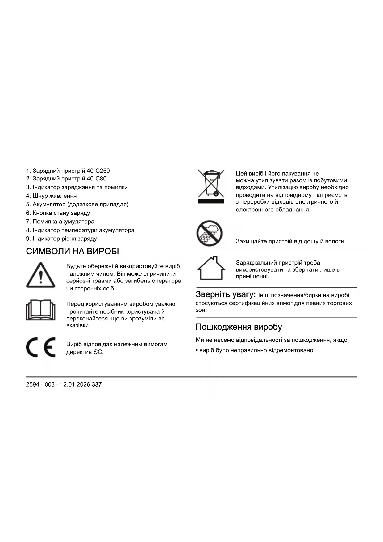 336 2594 - 003 - 12.01.20261. Зарядний пристрій 40-C250