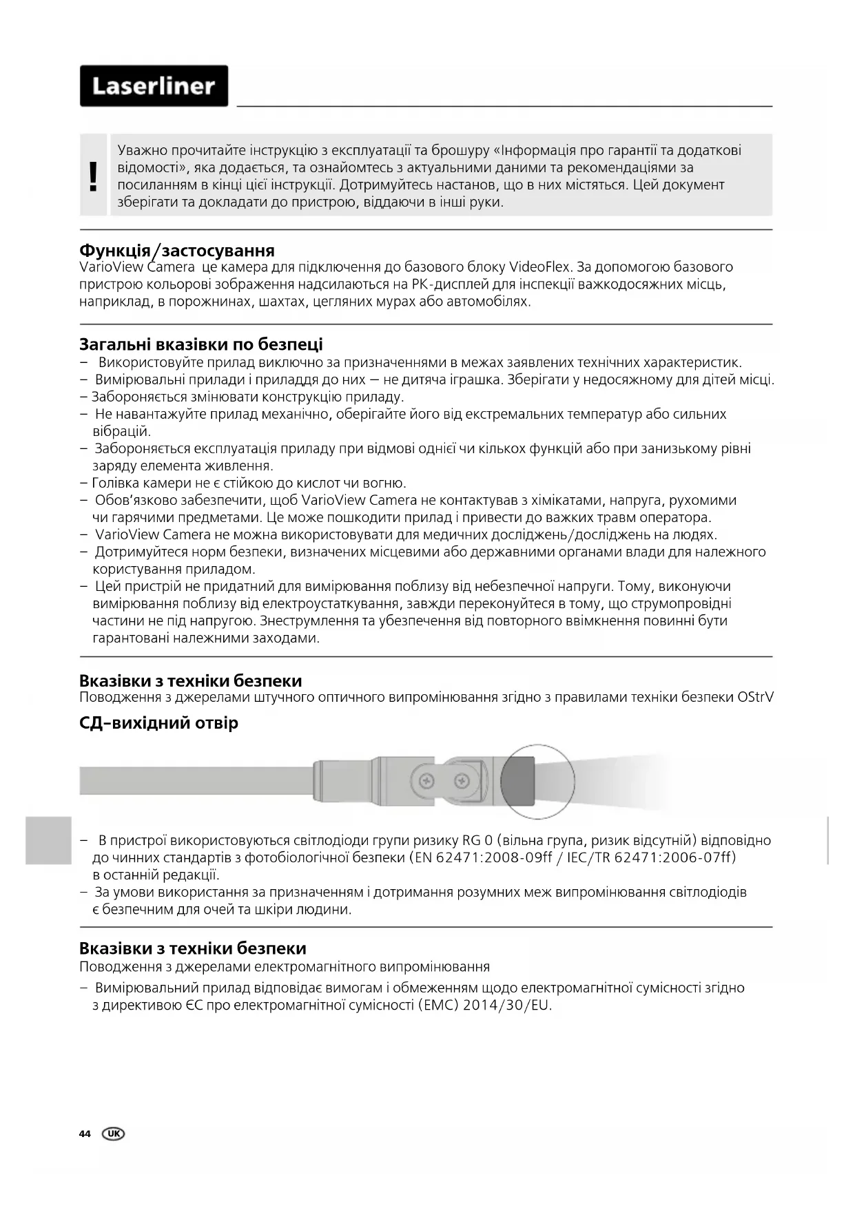 ПОСІБНИК КОРИСТУВАЧА VarioView Camera Laserliner