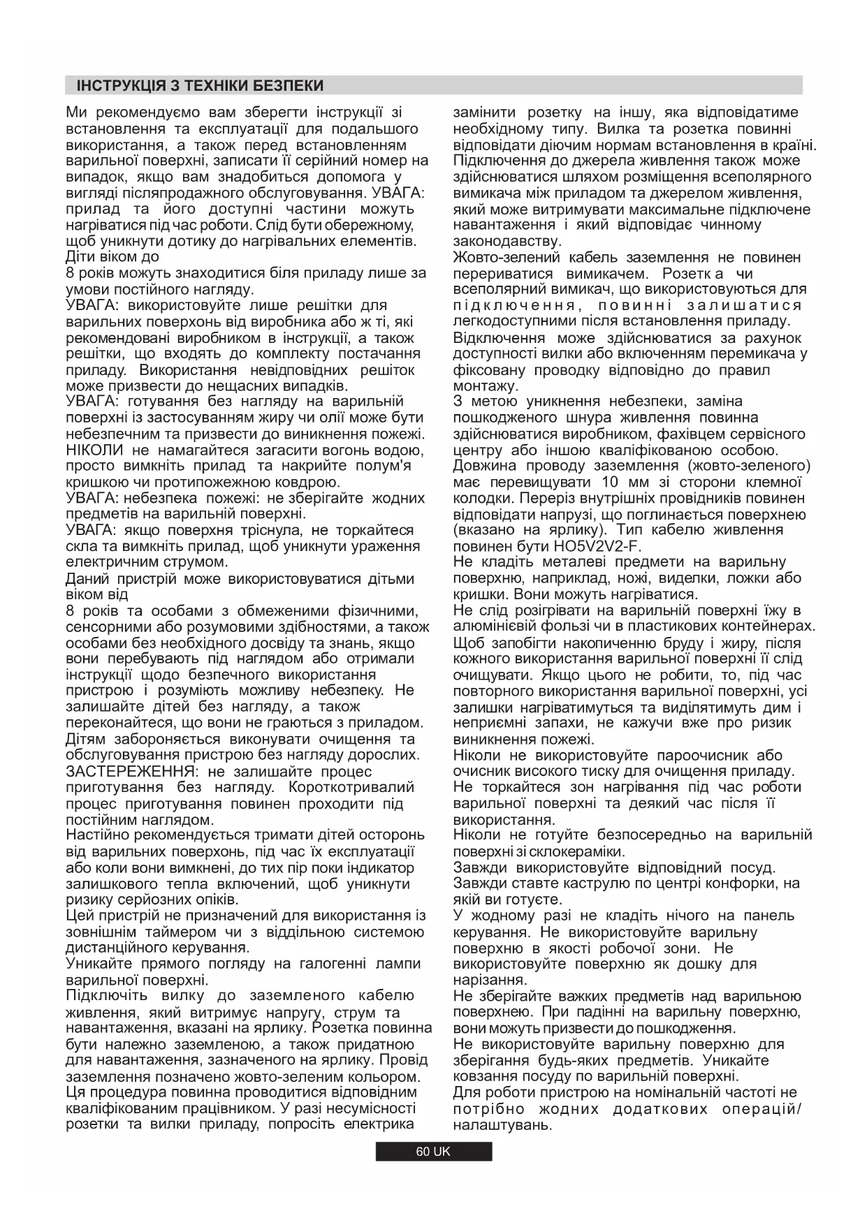 ВАРИЛЬНІ ПОВЕРХНІ ІНСТРУКЦІЯ З ЕКСПЛУАТАЦІЇ UK 60 VARNÉ DOSKY