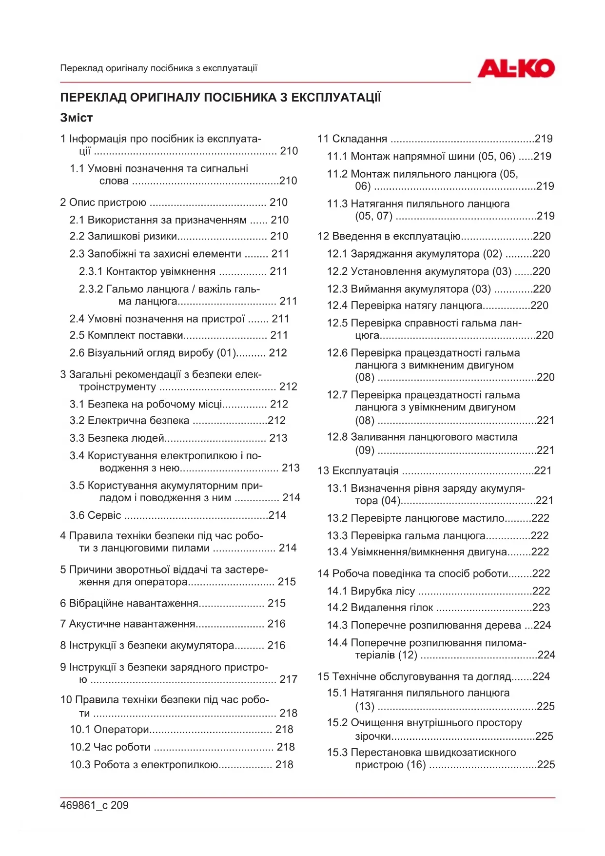 - 4 Правила техніки безпеки під час робо- ти з ланцюговими пилами p. 214