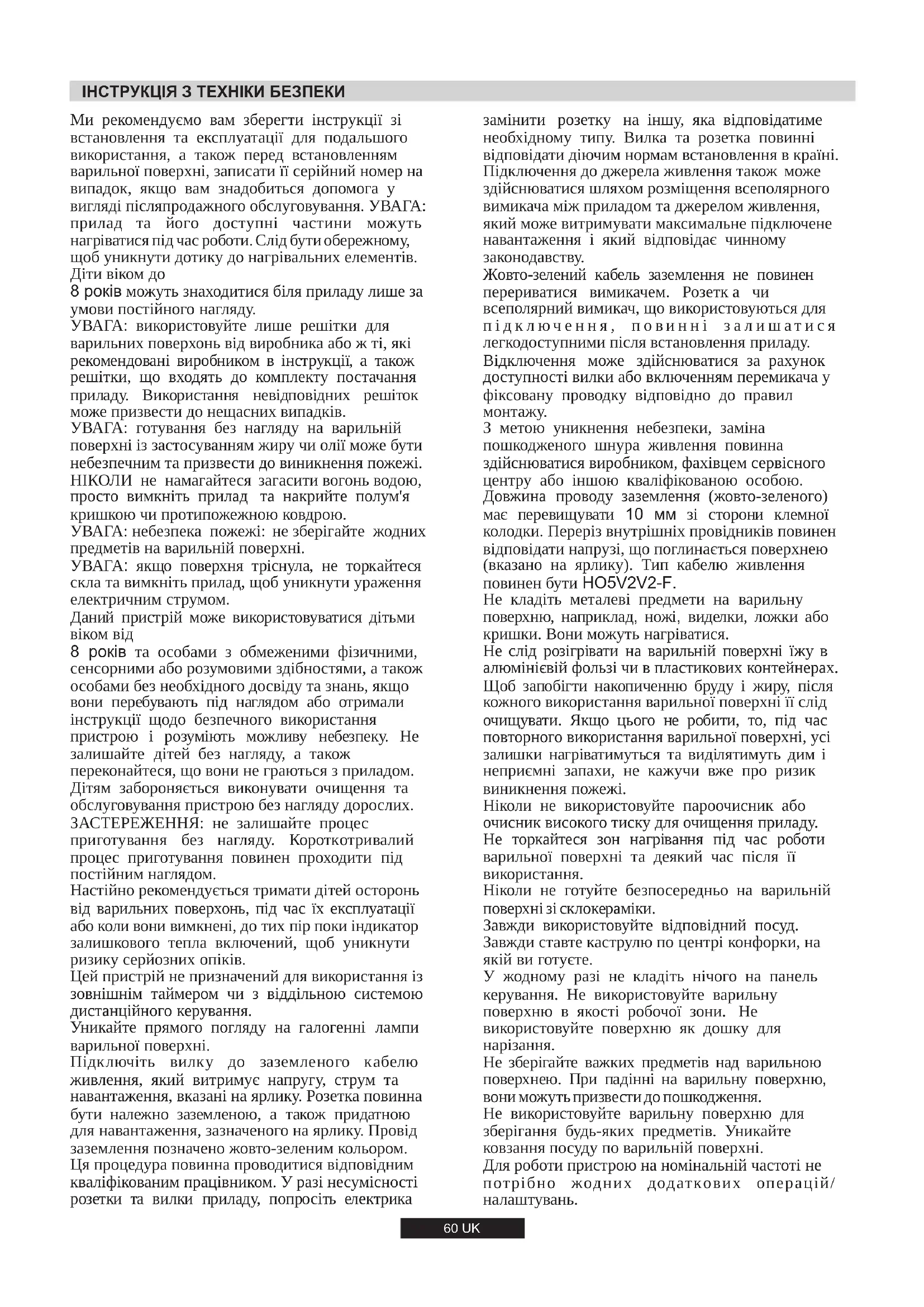 ВАРИЛЬНІ ПОВЕРХНІ ІНСТРУКЦІЯ З ЕКСПЛУАТАЦІЇ UK 60 VARNÉ DOSKY