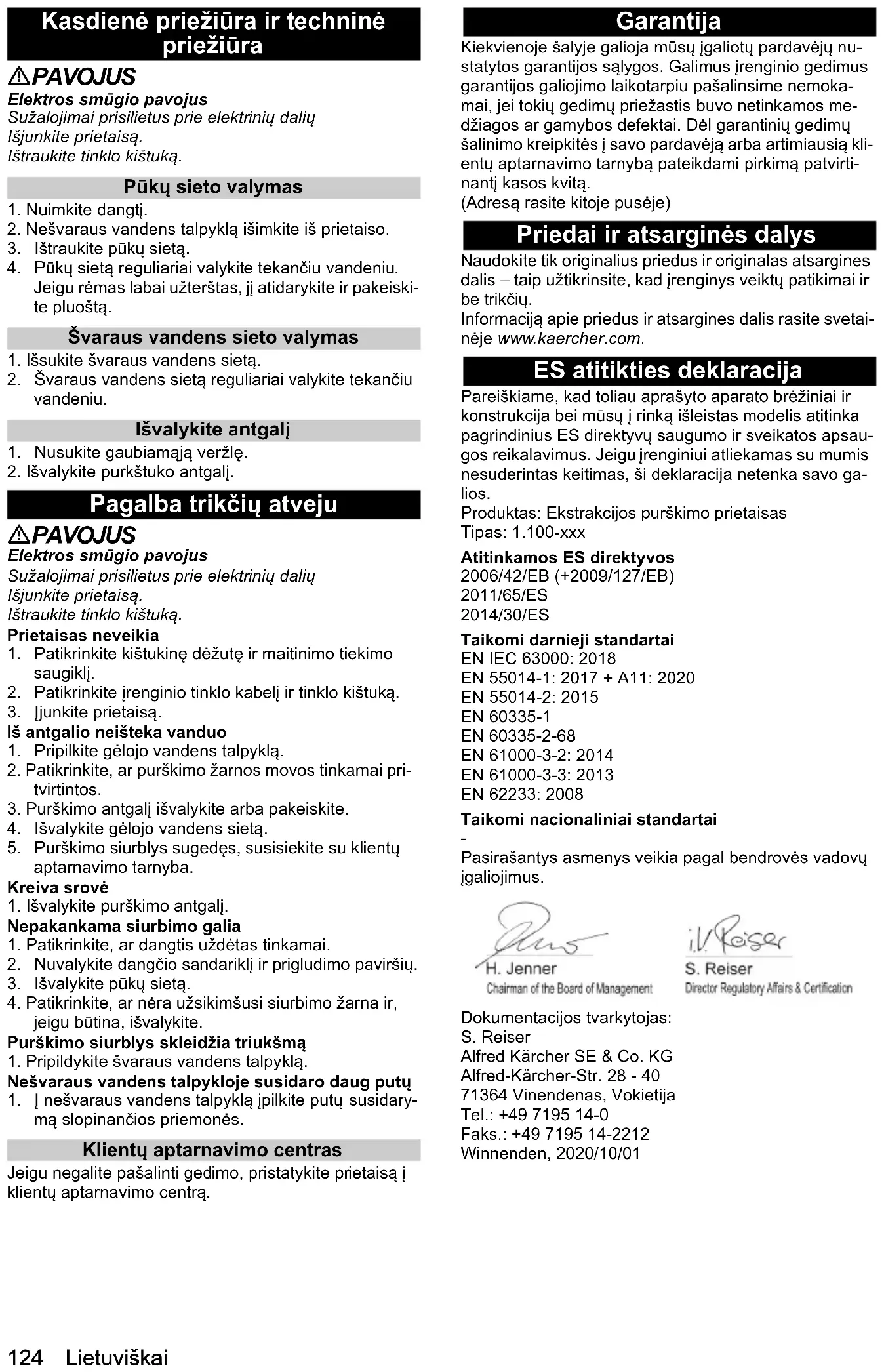 Тип: 1.100-xxx Відповідні директиви ЄС 2006/42/EG (+2009/127/EG) 2011/65/ЄС 2014/30/ЄС Застосовувані гармонізовані стандарти EN IEC 63000: 2018 EN 55014-1: 2017 + A11: 2020 EN 55014-2: 2015 EN 60335-1 EN 60335-2-68 EN 61000-3-2: 2014 EN 61000-3-3: 2013 EN 62233: 2008 Застосовувані національні стандарти