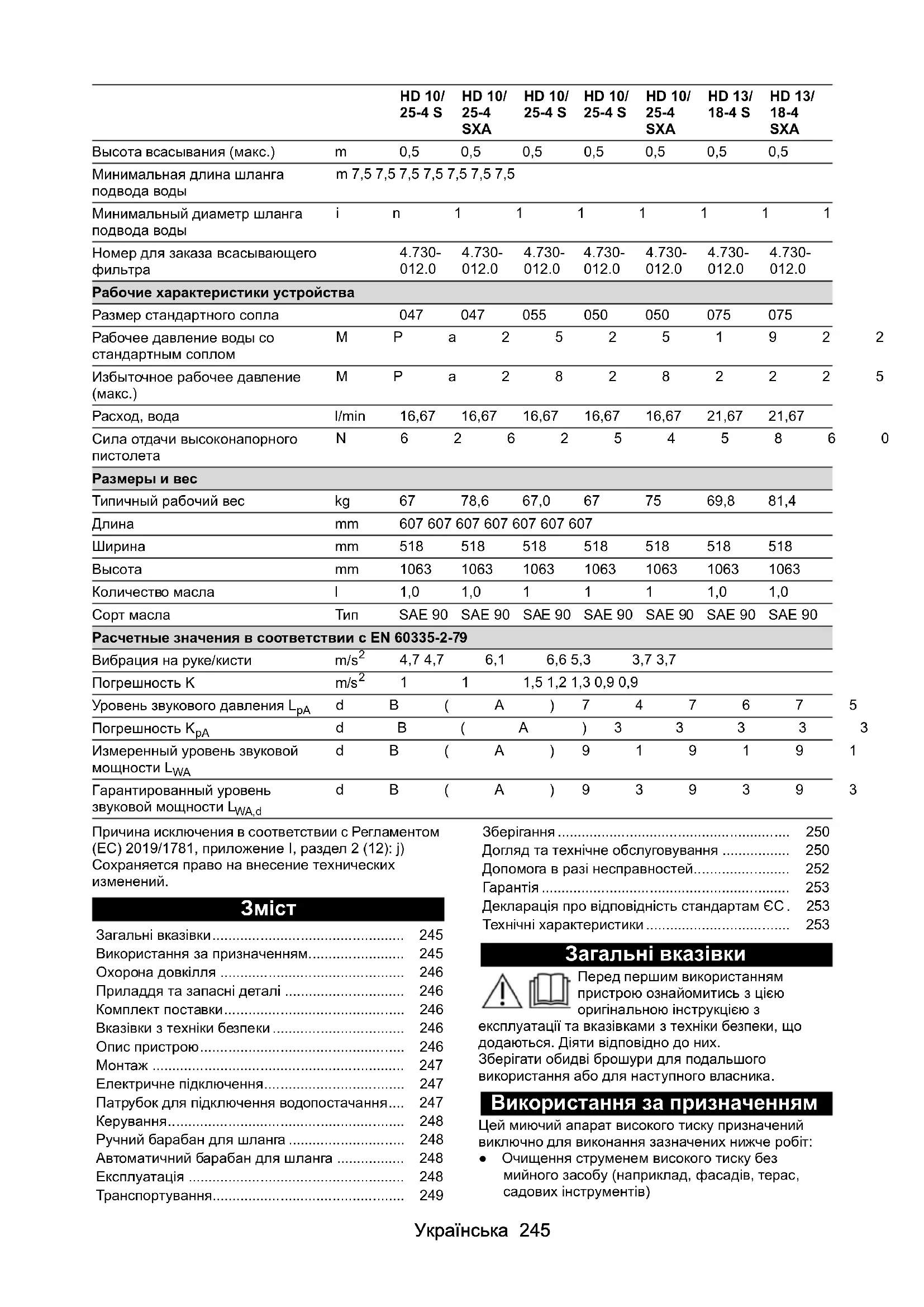 - dB(A)91919191919191 Гарантированный уровень звуковой мощности L WA,d dB(A)93939393939393 HD 10/ 25-4 S HD 10/ 25-4 SXA HD 10/ 25-4 S HD 10/ 25-4 S HD 10/ 25-4 SXA HD 13/ 18-4 S HD 13/ 18-4 SXA Загальні вказівки p. 245