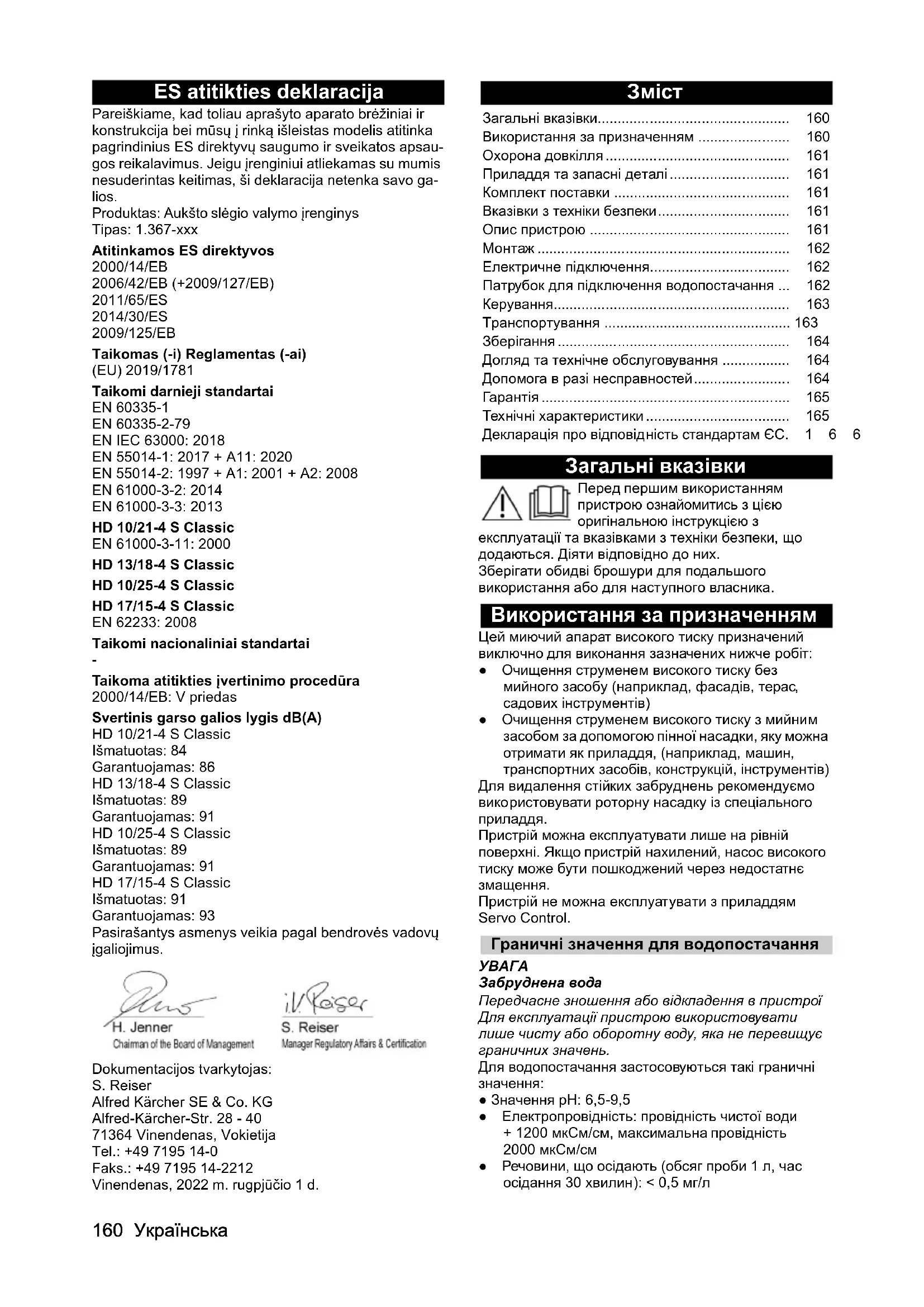 окого тиску Тип: 1.367-xxx Відповідні директиви ЄС 2000/14/ЄС 2006/42/EG (+2009/127/EG) 2011/65/ЄС 2014/30/ЄС 2009/125/ЄС Застосований(-і) регламент(-и) (ЄС) 2019/1781 Застосовувані гармонізовані стандарти EN 60335-1 EN 60335-2-79 EN IEC 63000: 2018 EN 55014-1: 2017 + A11: 2020 EN 55014-2: 1997 + A1: 2001 + A2: 2008 EN 61000-3-2: 2014 EN 61000-3-3: 2013 HD 10/21-4 S Classic EN 61000-3-11: 2000 HD 13/18-4 S Classic HD 10/25-4 S Classic HD 17/15-4 S Classic EN 62233: 2008 Застосовувані національні стандарти