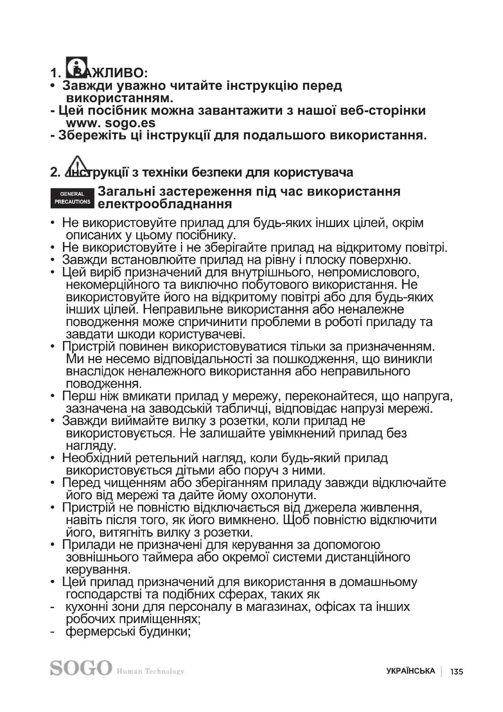 - Завжди уважно читайте інструкцію перед використанням. - Цей посібник можна завантажити з нашої веб-сторінки www. sogo.es - Збережіть ці інструкції для подальшого використання.