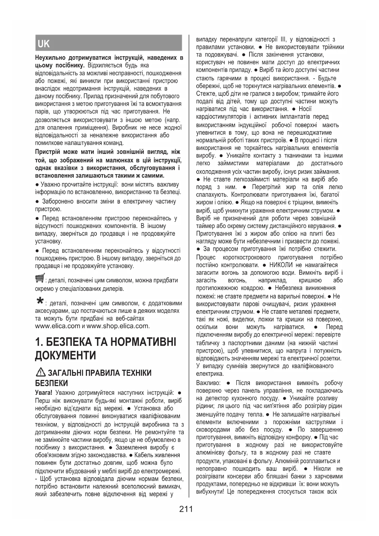 ● Перед встановленням переконайтесь у відсутності пошкоджень пристрою. В іншому випадку, зверніться до продавця і не продовжуйте установку. : деталі, позначені цим символом, можна придбати окремо у спеціалізованих дилерів. : деталі, позначені цим символом, є додатковими аксесуарами, що постачаються лише в деяких моделях та можуть бути придбані на веб-сайтах www.elica.com и www.shop.elica.com.