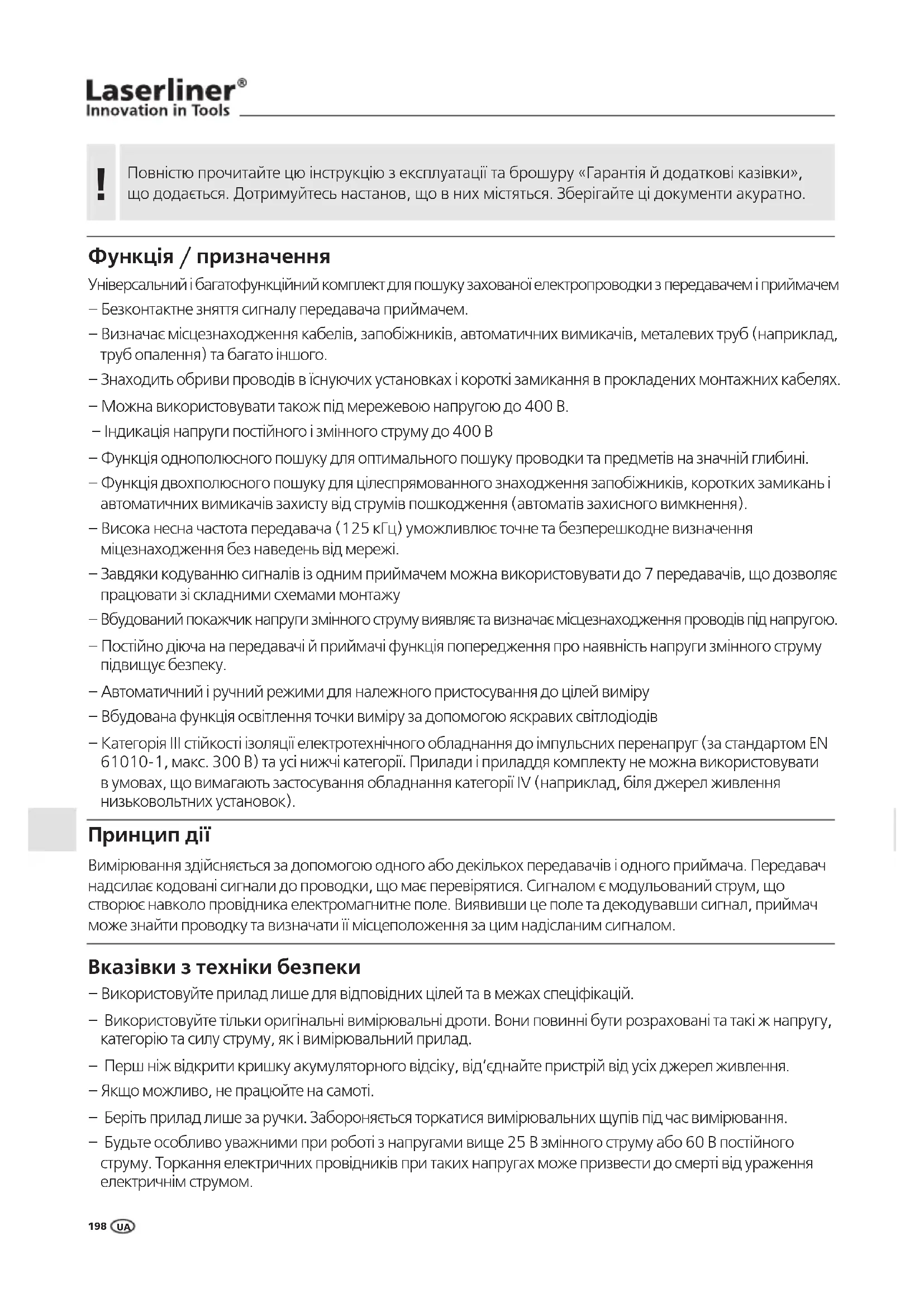 ПОСІБНИК КОРИСТУВАЧА CableTracer Pro Laserliner