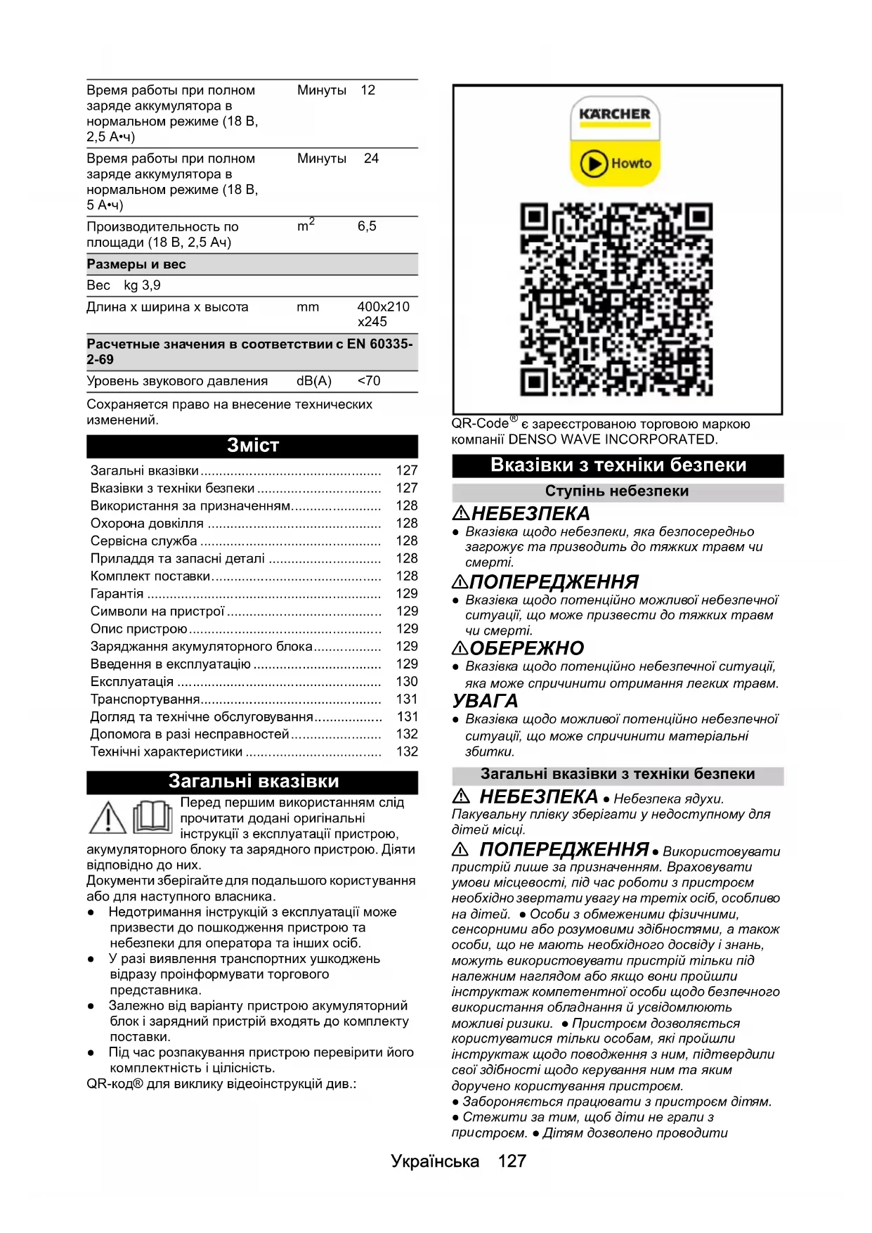 Інформація щодо приладдя та запасних частин міститься на сайті www.kaercher.com. Комплект поставки Комплектація пристрою зазначена на упаковці. Під час розпакування пристрою перевірити комплектацію. У разі нестачі приладдя або ушкоджень, отриманих під час транспортування,Українська 129 слід повідомити про це торговельній організації, яка продала пристрій.