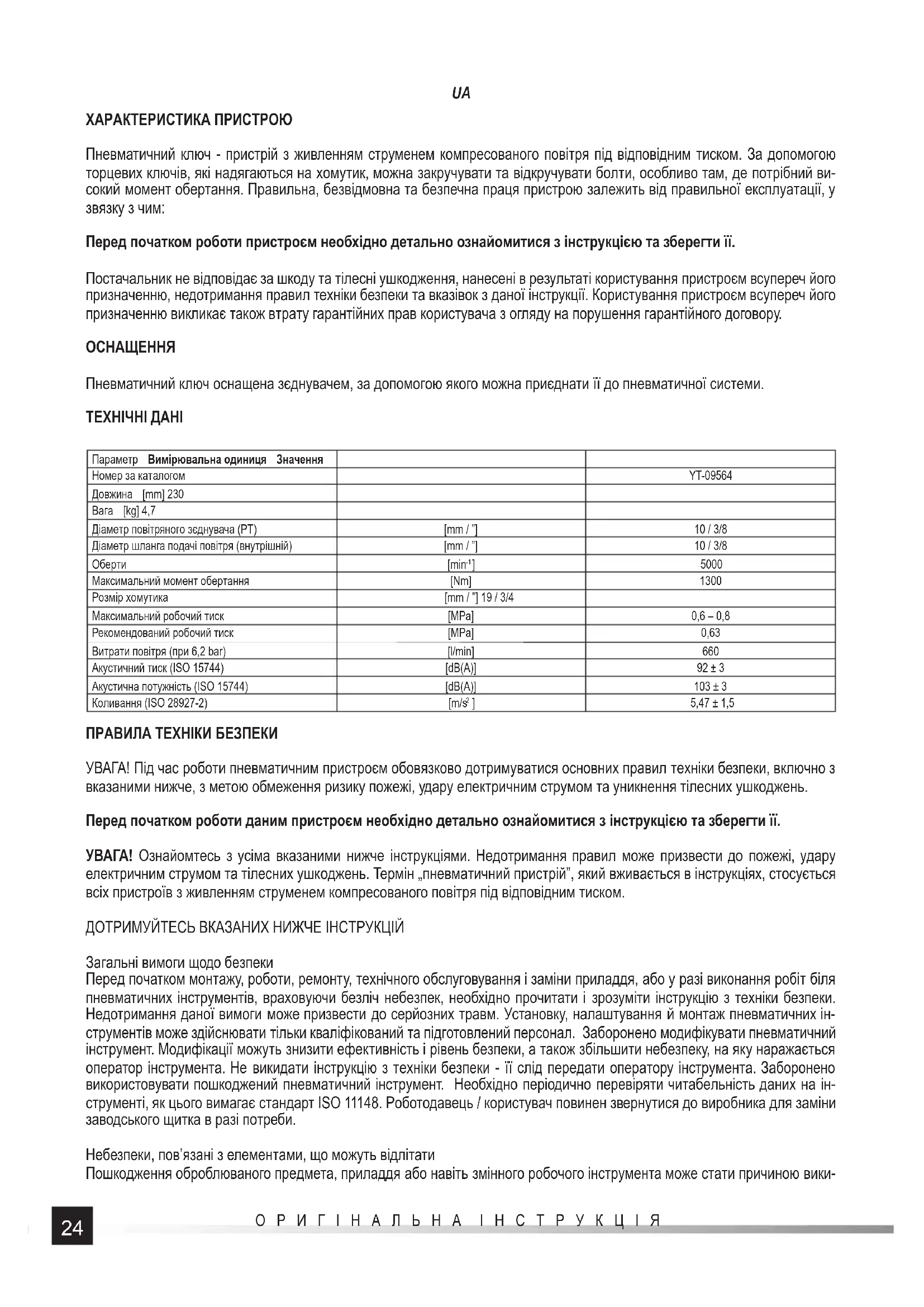 ПОСІБНИК КОРИСТУВАЧА YT09564 Yato
