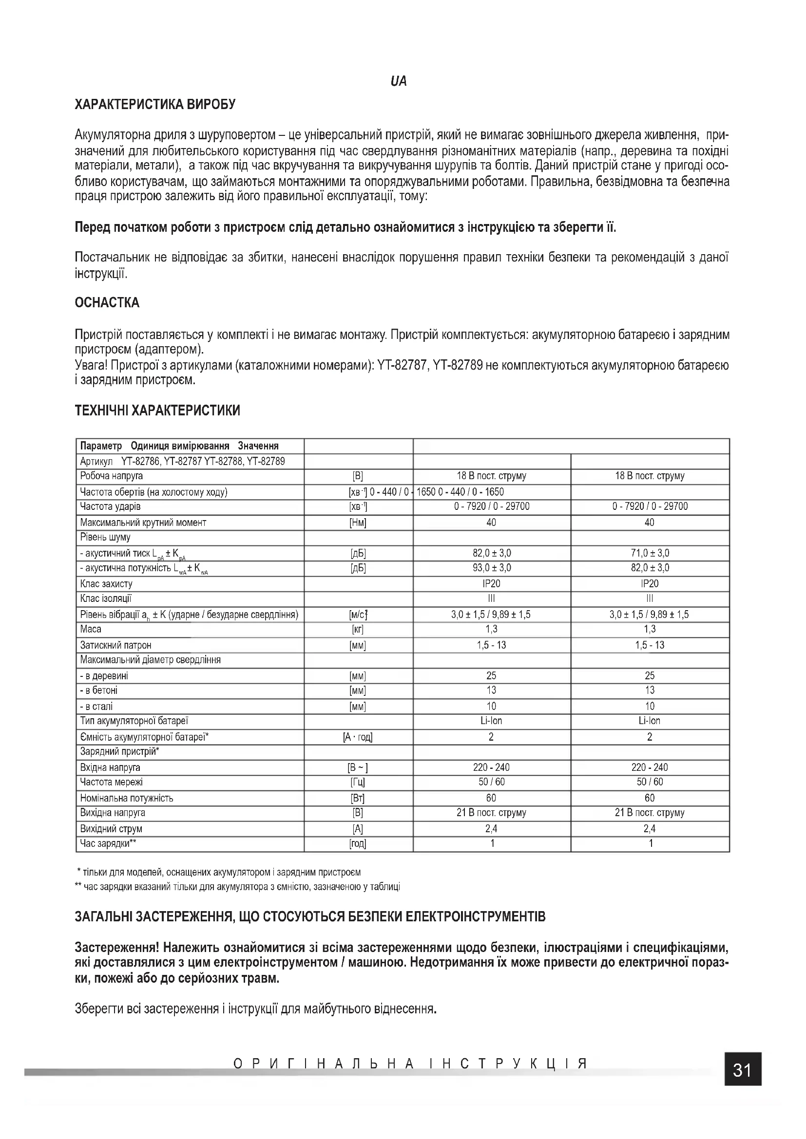 ПОСІБНИК КОРИСТУВАЧА YT82789 Yato