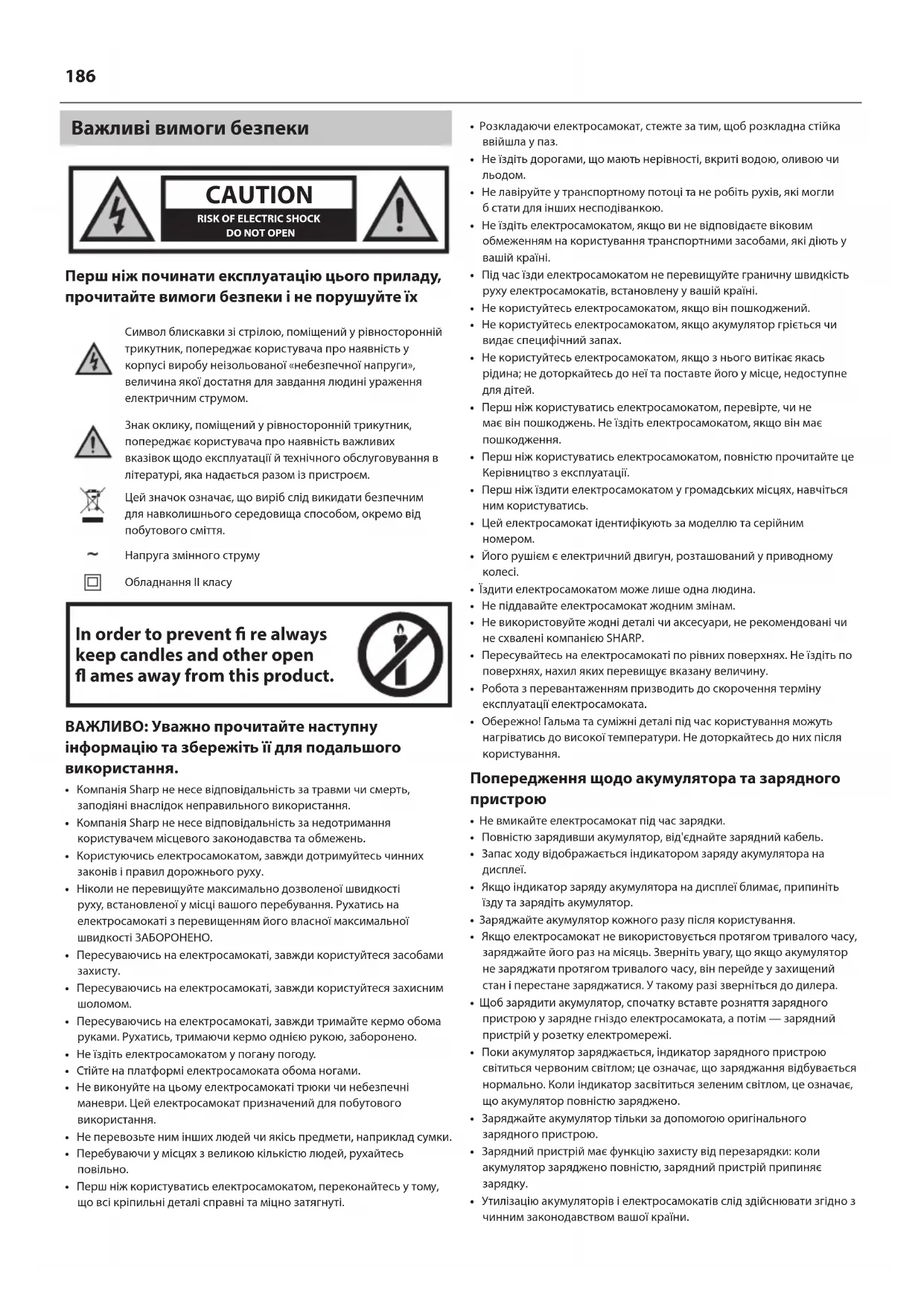 - Компанія Sharp не несе відповідальність за травми чи смерть, заподіяні внаслідок неправильного використання.