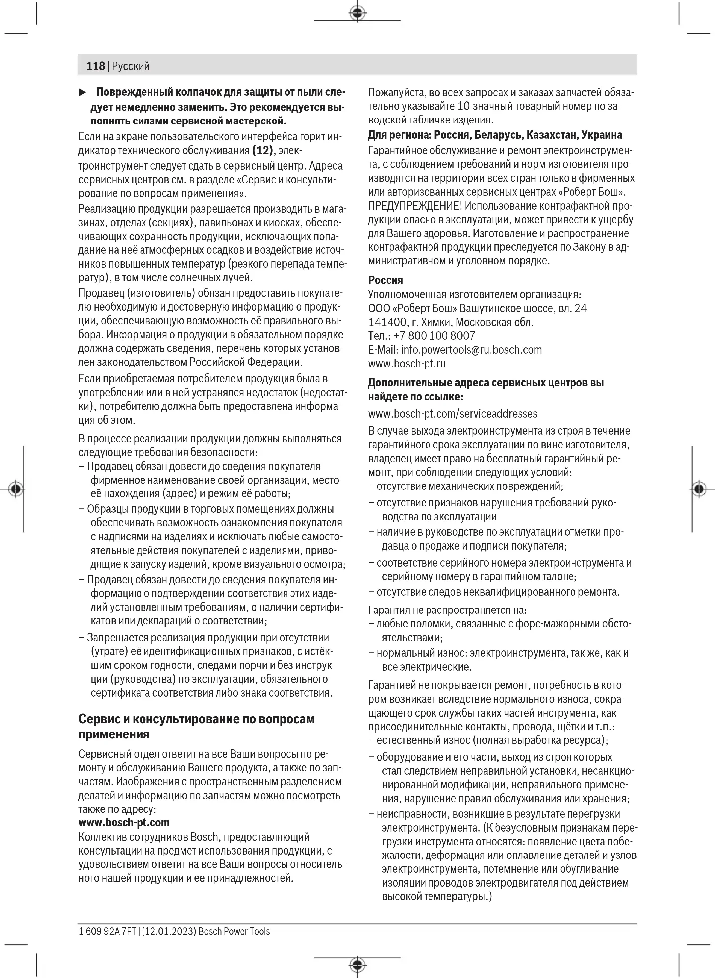 Bosch Power Tools 1 609 92A 7FT | (12.01.2023)124 | Українська Індикатор технічного обслуговування