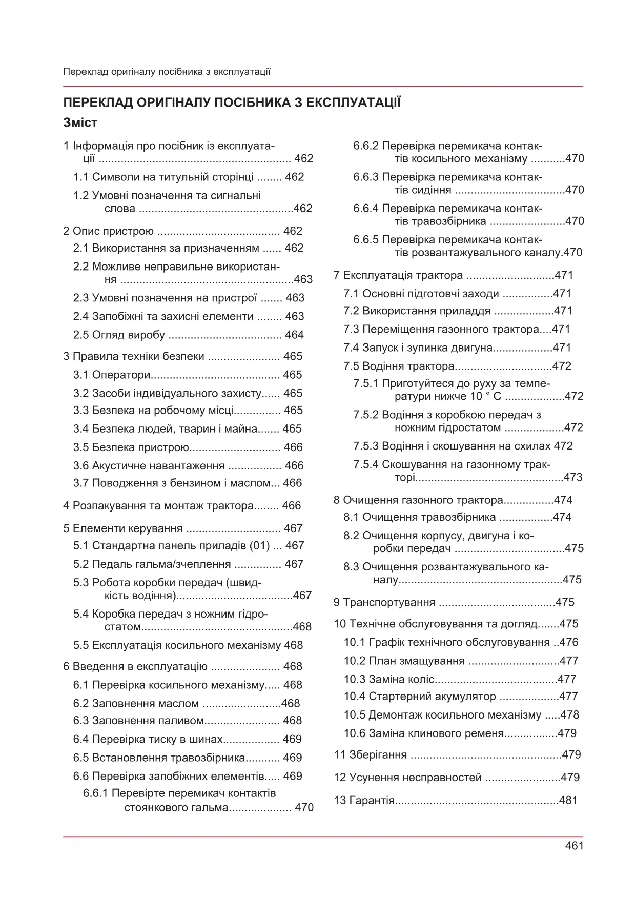 4 Розпакування та монтаж трактора........ 466 5 Елементи керування .............................. 467