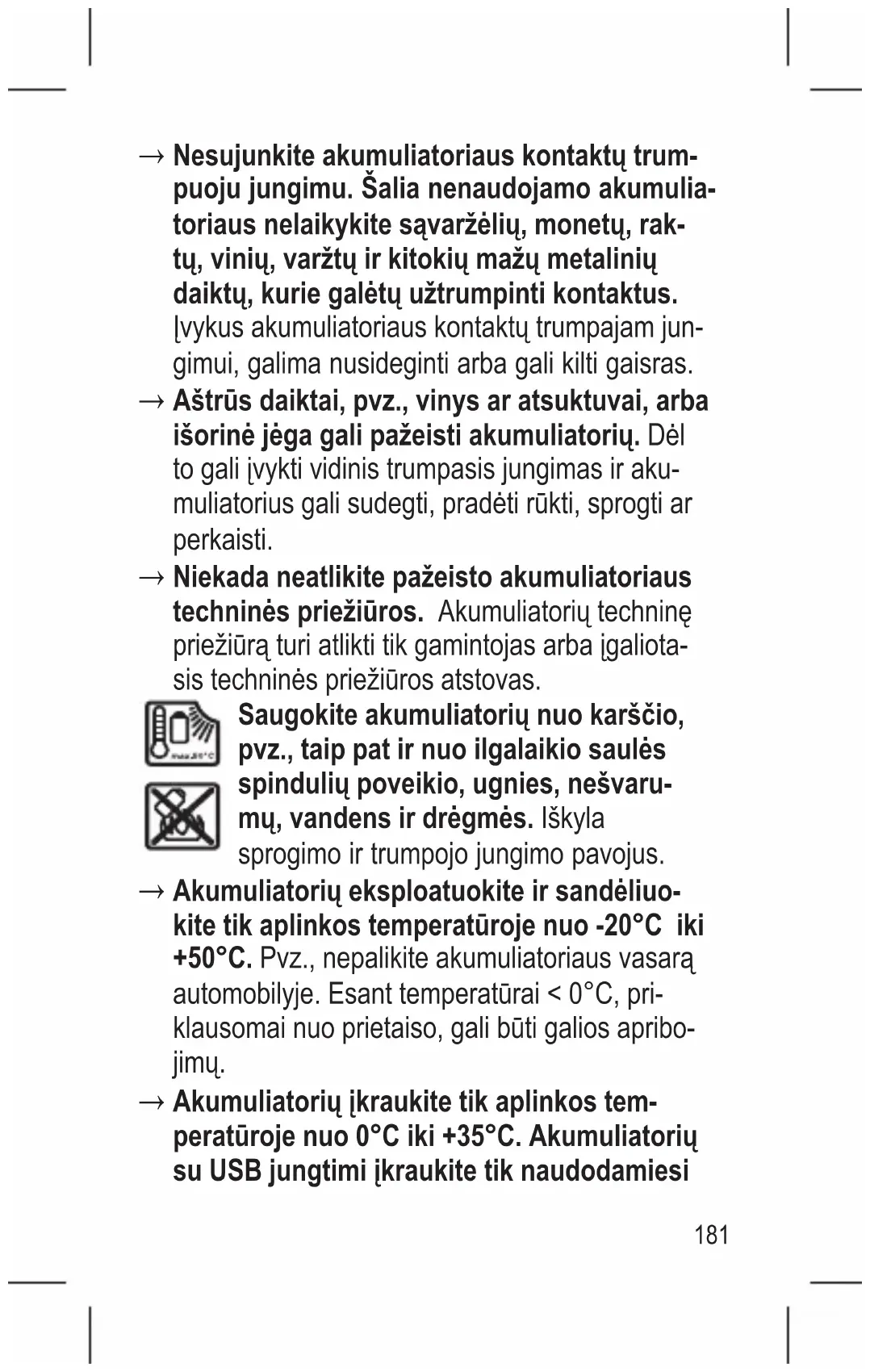 Akumuliatoriųįkraukitetikaplinkostem- peratūrojenuo0°Ciki+35°C.Akumuliatorių suUSBjungtimiįkraukitetiknaudodamiesi 181Українська Правилатехнікибезпеки Прочитайтевсізагальніінструкції таправилатехнікибезпеки Недотриманнязагальнихінструкційі правилтехнікибезпекиможепризвестидо ураженняелектричнимструмом,пожежіта/або тяжкоготравмування.Збережітьінформацію щодоправилтехнікибезпекийзагальні інструкціїдляподальшогокористування.