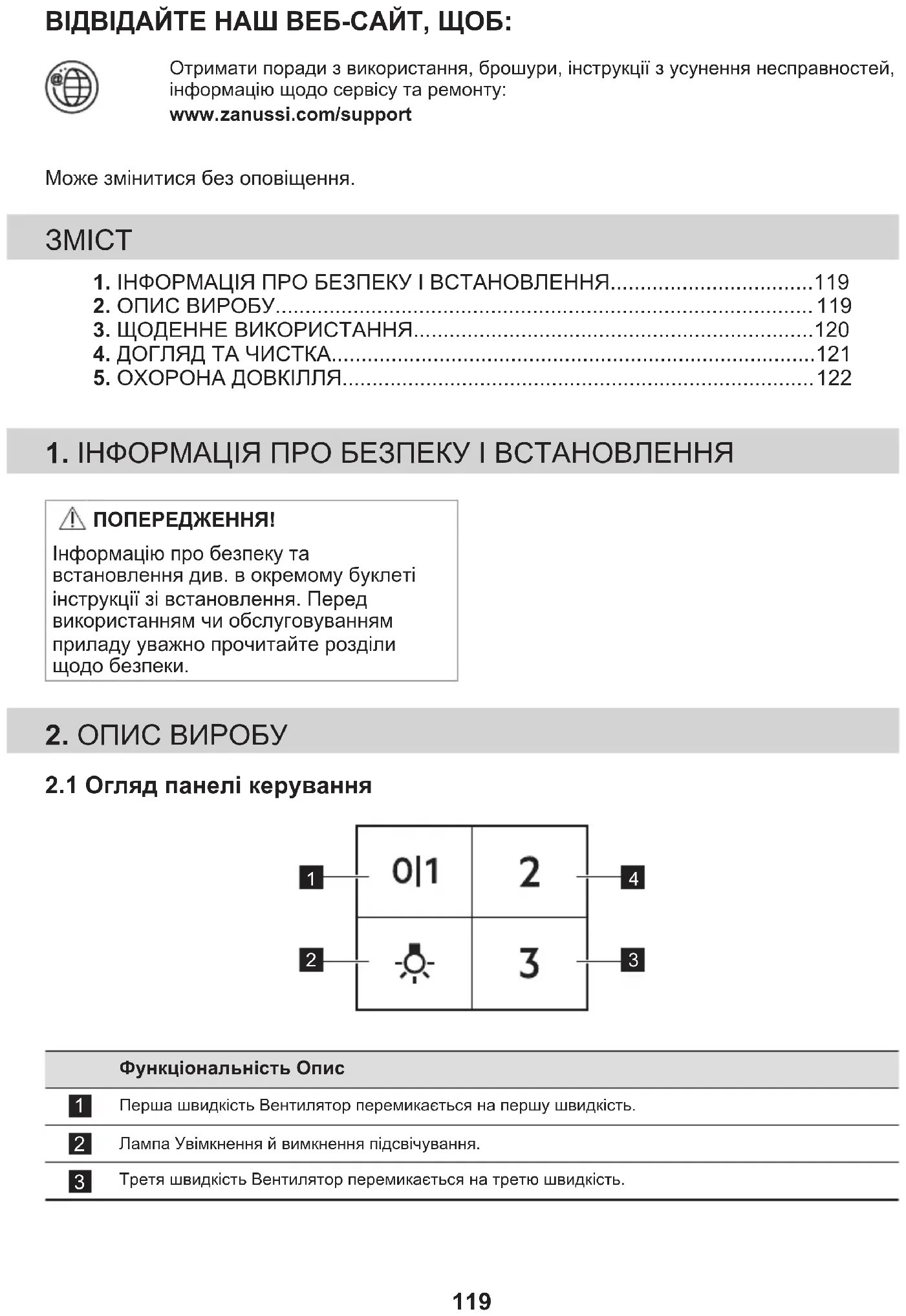 1. ІНФОРМАЦІЯ ПРО БЕЗПЕКУ І ВСТАНОВЛЕННЯ..................................119