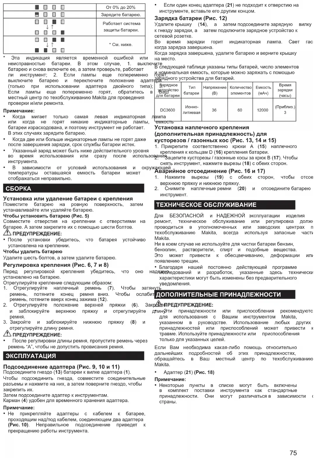 - УВАГА – Щоб знизити ризик травмування, заряджайте виключно акумуляторні батареї MAKITA. Інші типи акумуляторів можутьвибухнути, спричиняючи травми тапошкодженнямайна.