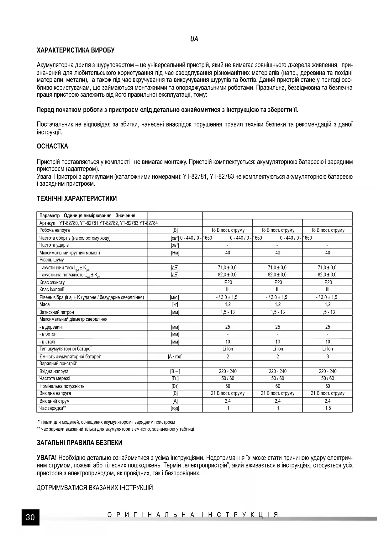 YT-82781 - дриль Yato - Безкоштовний посібник користувача