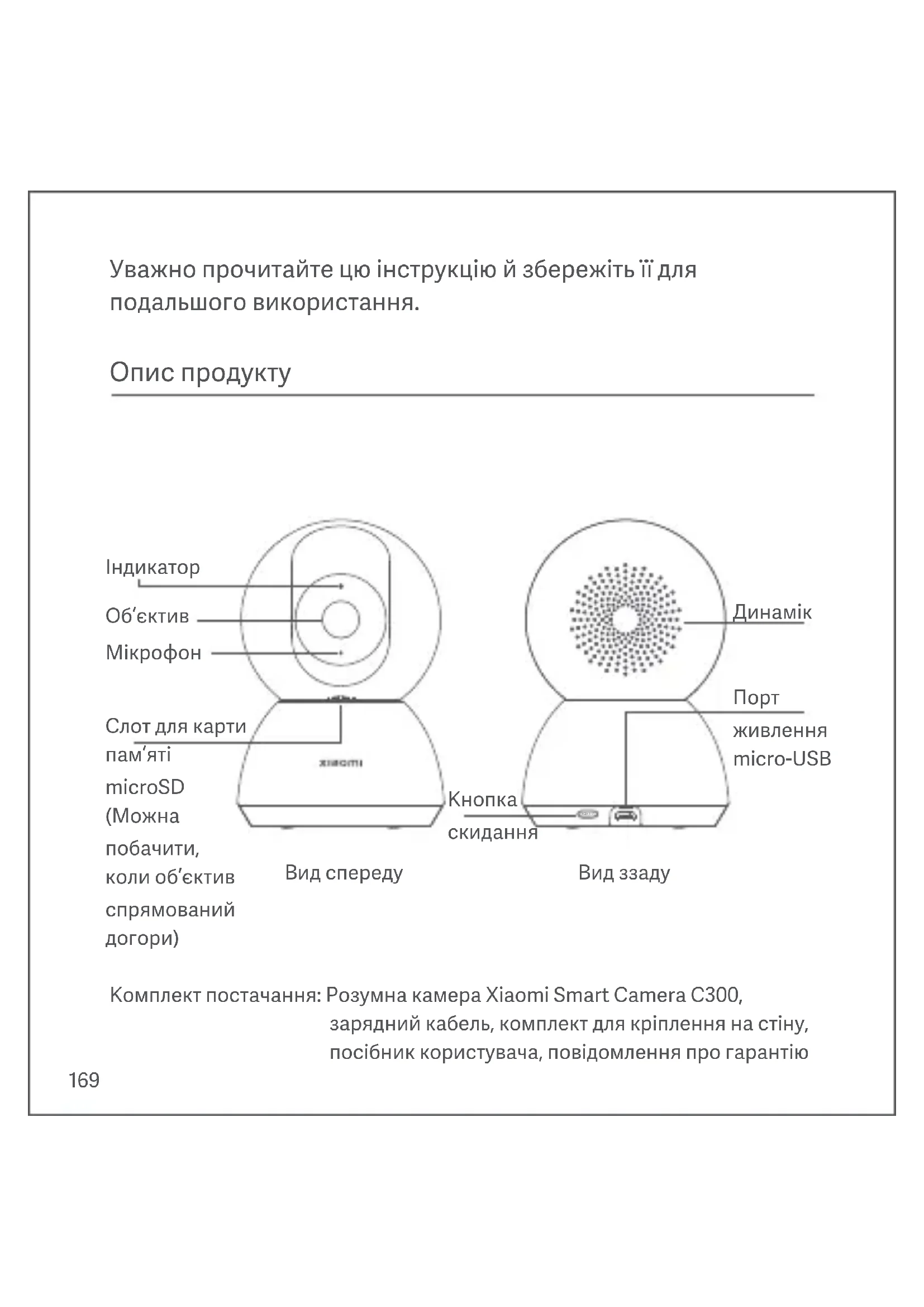 ПОСІБНИК КОРИСТУВАЧА Smart Camera C300 Xiaomi
