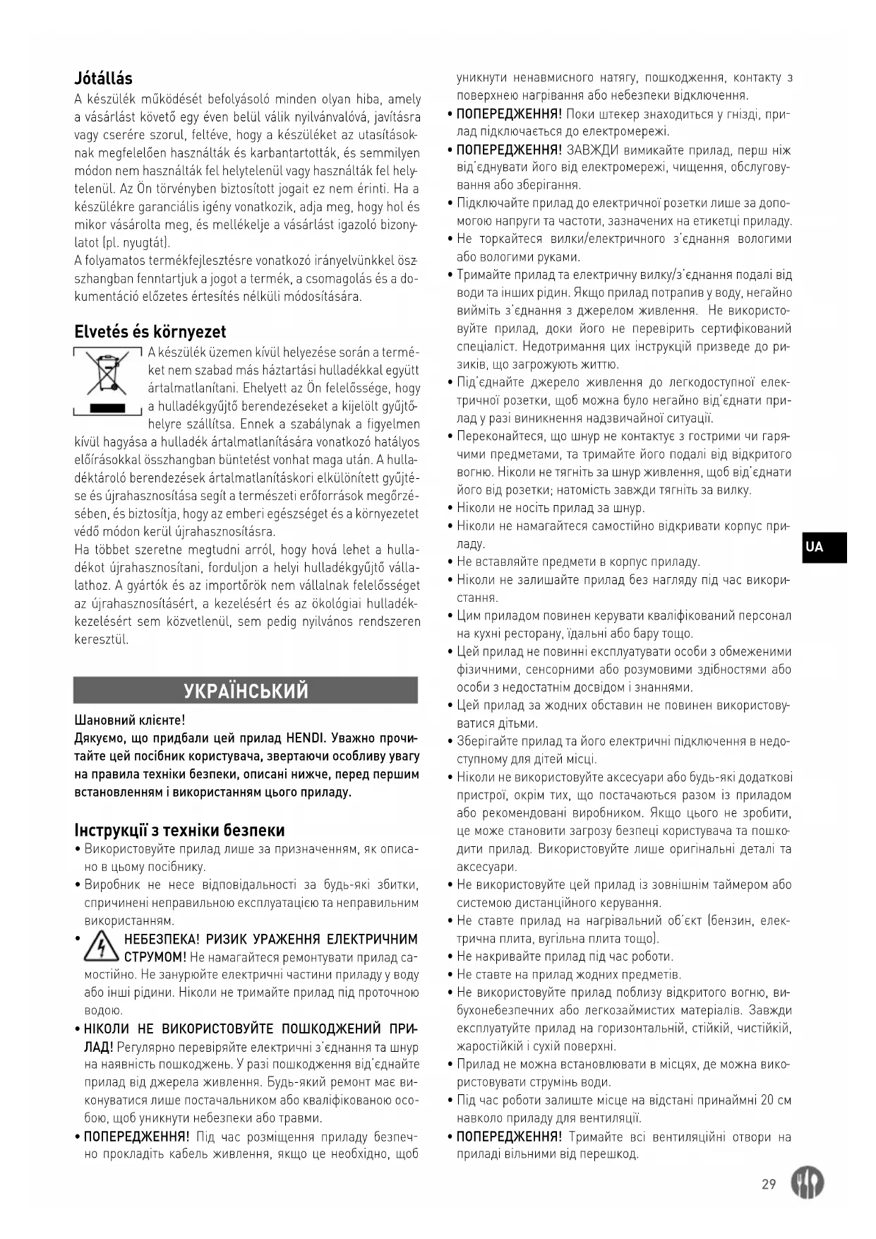 ПОСІБНИК КОРИСТУВАЧА 265109 Hendi