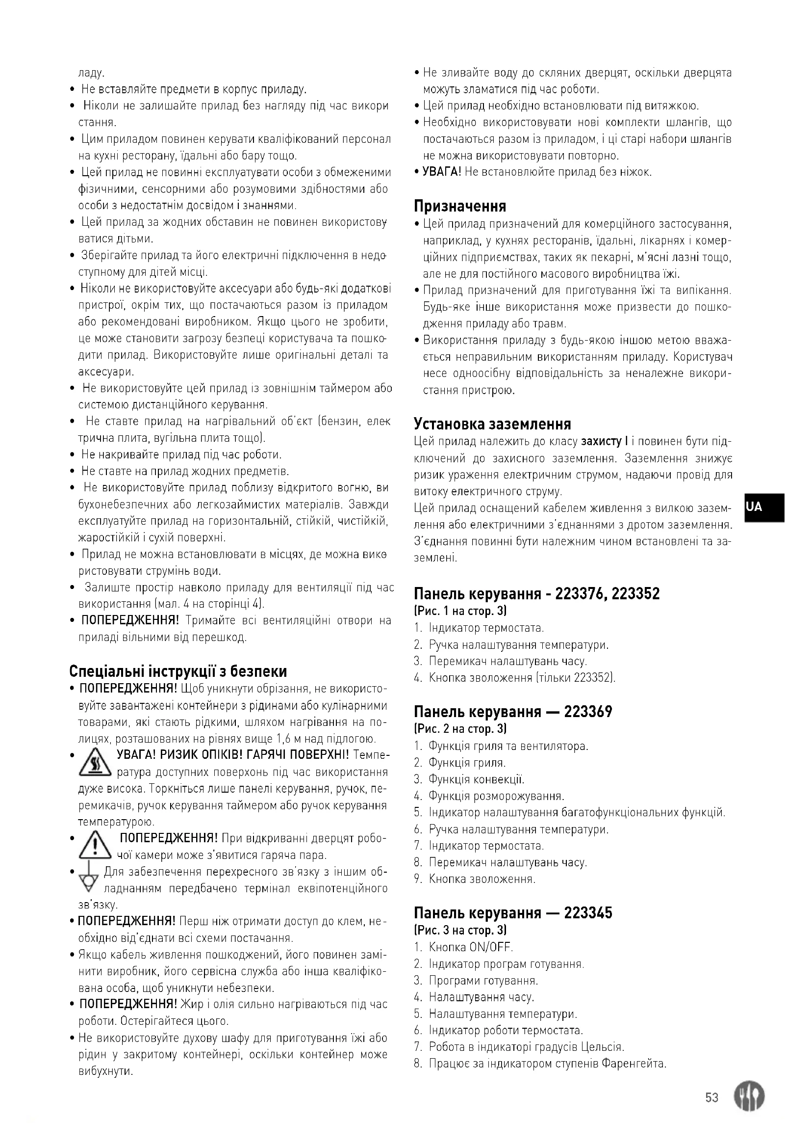 Панель керування - 223376, 223352 (Рис. 1 на стор. 3)