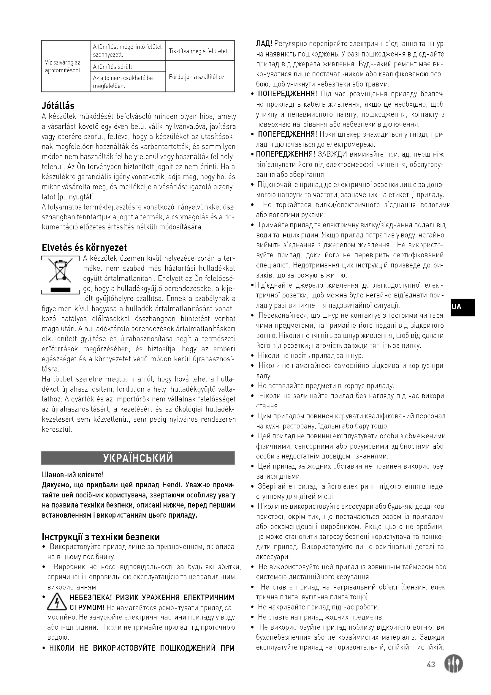 Будь-які дефекти, що впливають на функціональність при- ладу, які стають очевидними протягом одного року після по- купки, будуть відремонтовані за допомогою безкоштовного ремонту або заміни за умови, що прилад використовувався та підтримувався відповідно до інструкцій, а також не був зловживаний або не був використаний неналежним чином. Це не впливає на Ваші законні права. Якщо прилад вима
