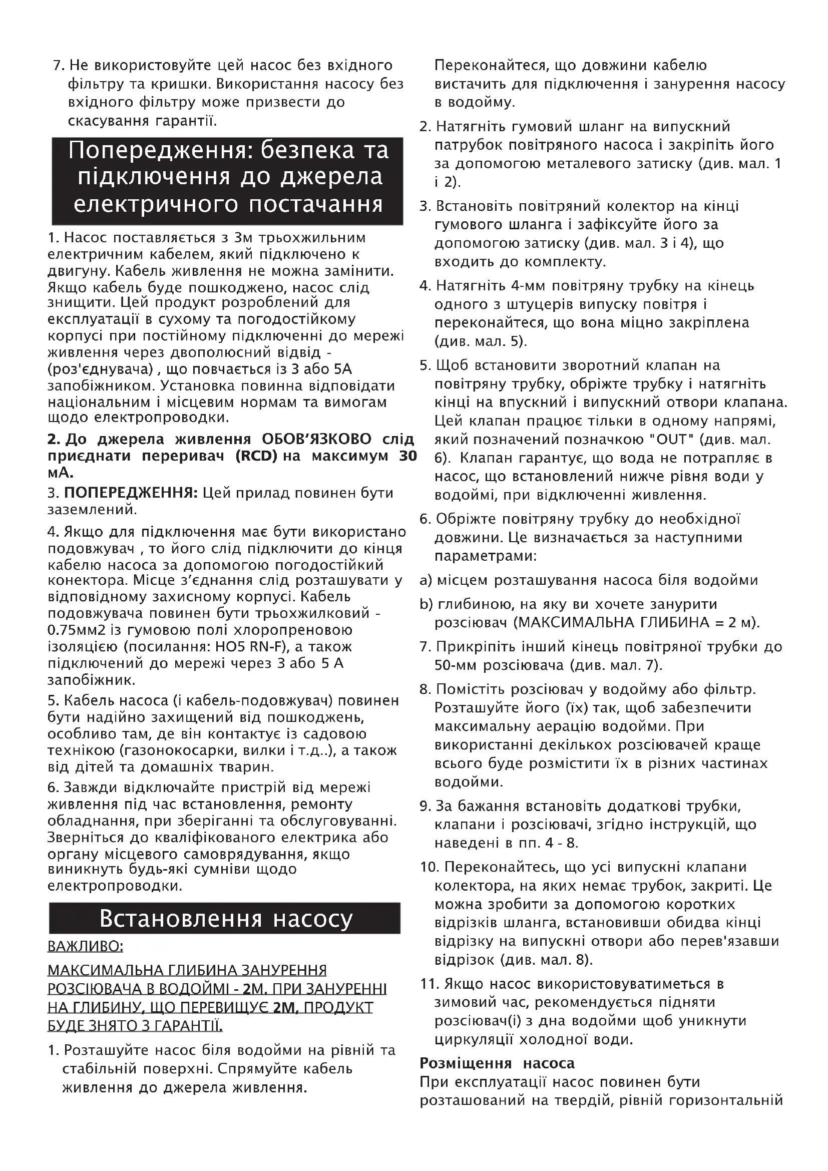 5. Кабель насоса (і кабель-подовжувач) повинен