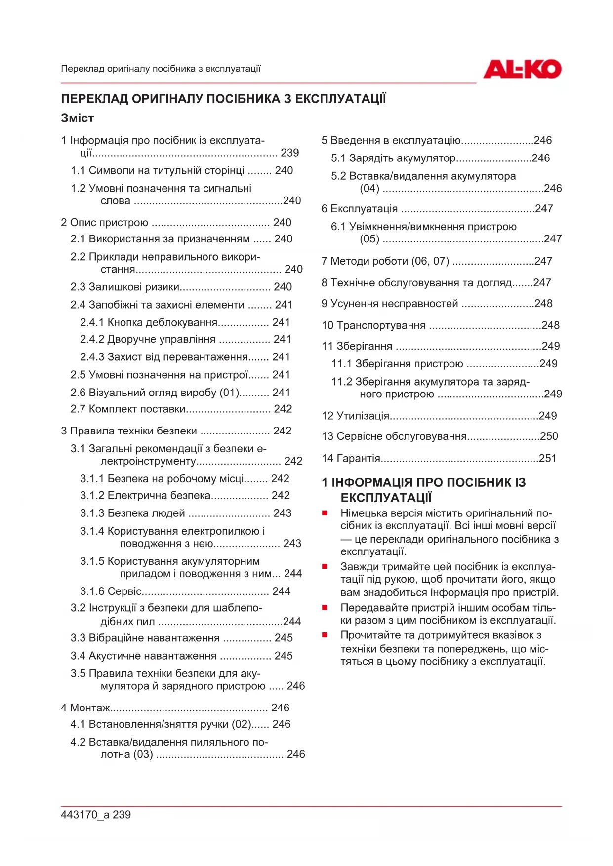 1 Інформація про посібник із експлуата- ції............................................................. 239