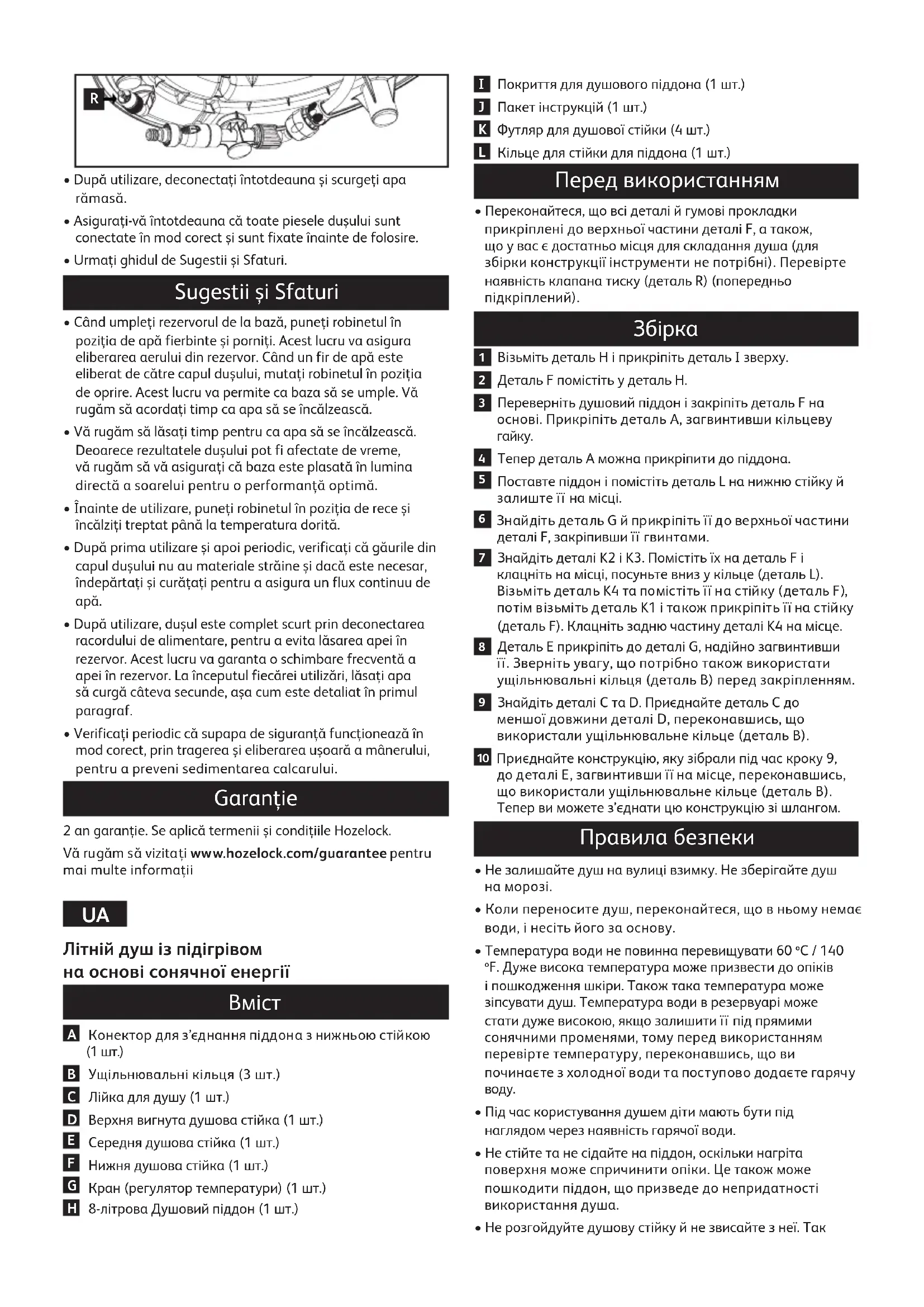 2 рік гарантії. Застосовуються чинні положення та умови компанії Hozelock. Відвідайте веб-сторінку www.hozelock.com/guarantee, щоби дізнатися більше. SLO Zunanji solarni ogrevan tuš Kazalo vsebine