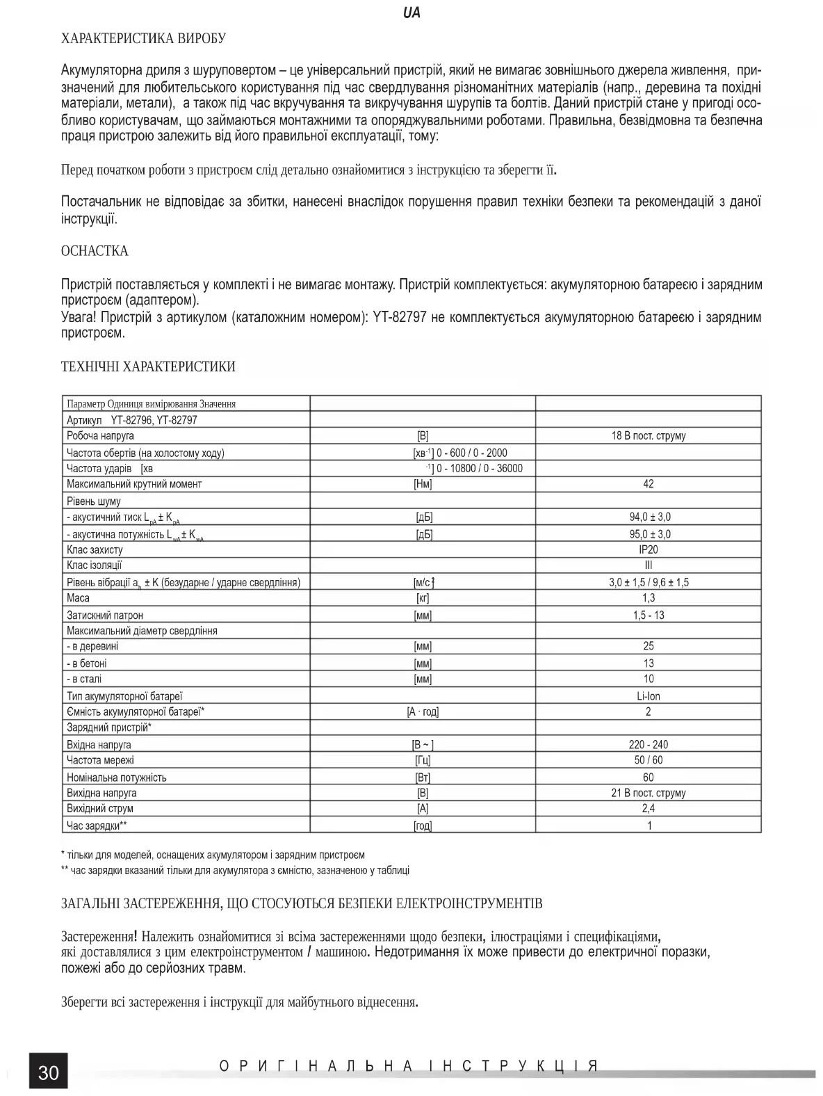 YT-82796 - дриль Yato - Безкоштовний посібник користувача
