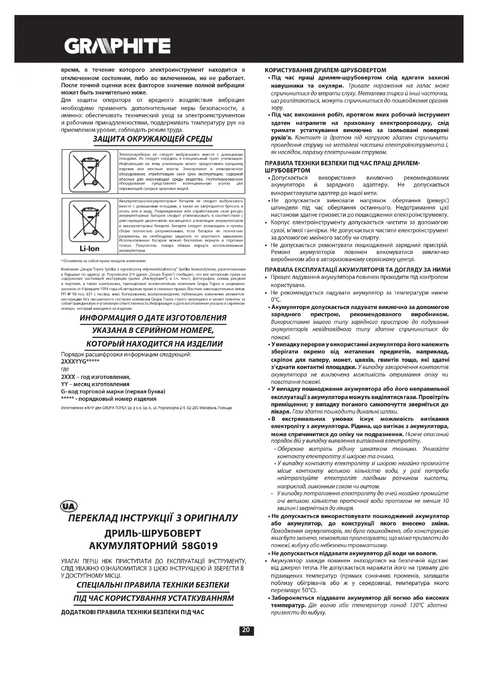 58G019 - дриль Graphite - Безкоштовний посібник користувача