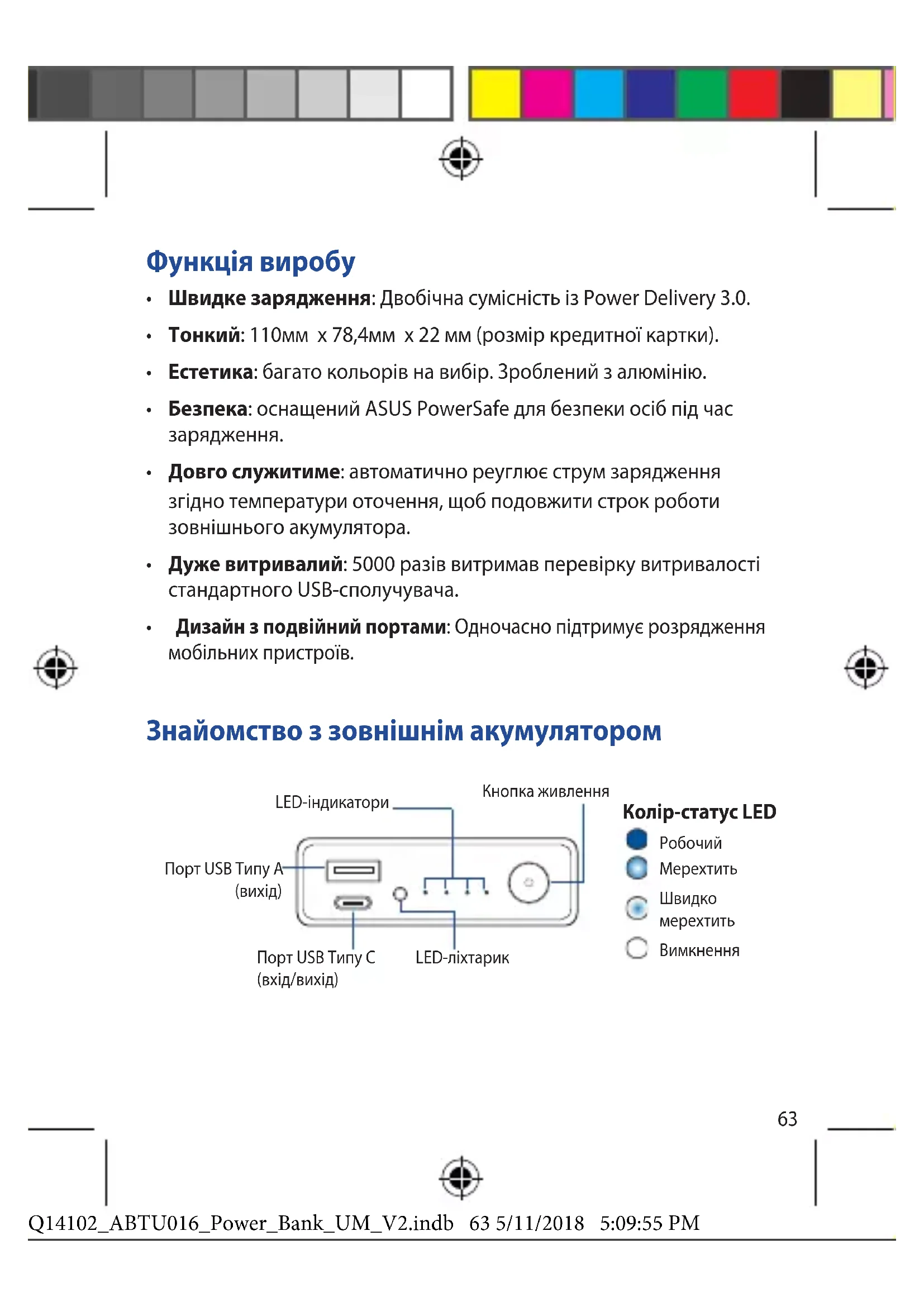Q14102_ABTU016_Power_Bank_UM_V2.indb 62 5/11/2018 5:09:54 PM63 Функція виробу