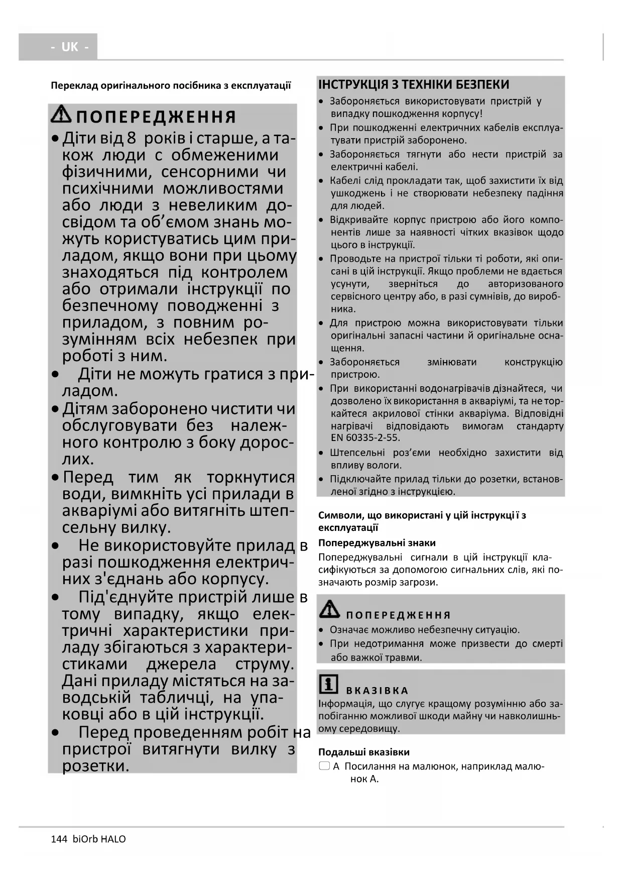 UK - Переклад оригінального посібника з експлуатації ПОПЕРЕДЖЕННЯ