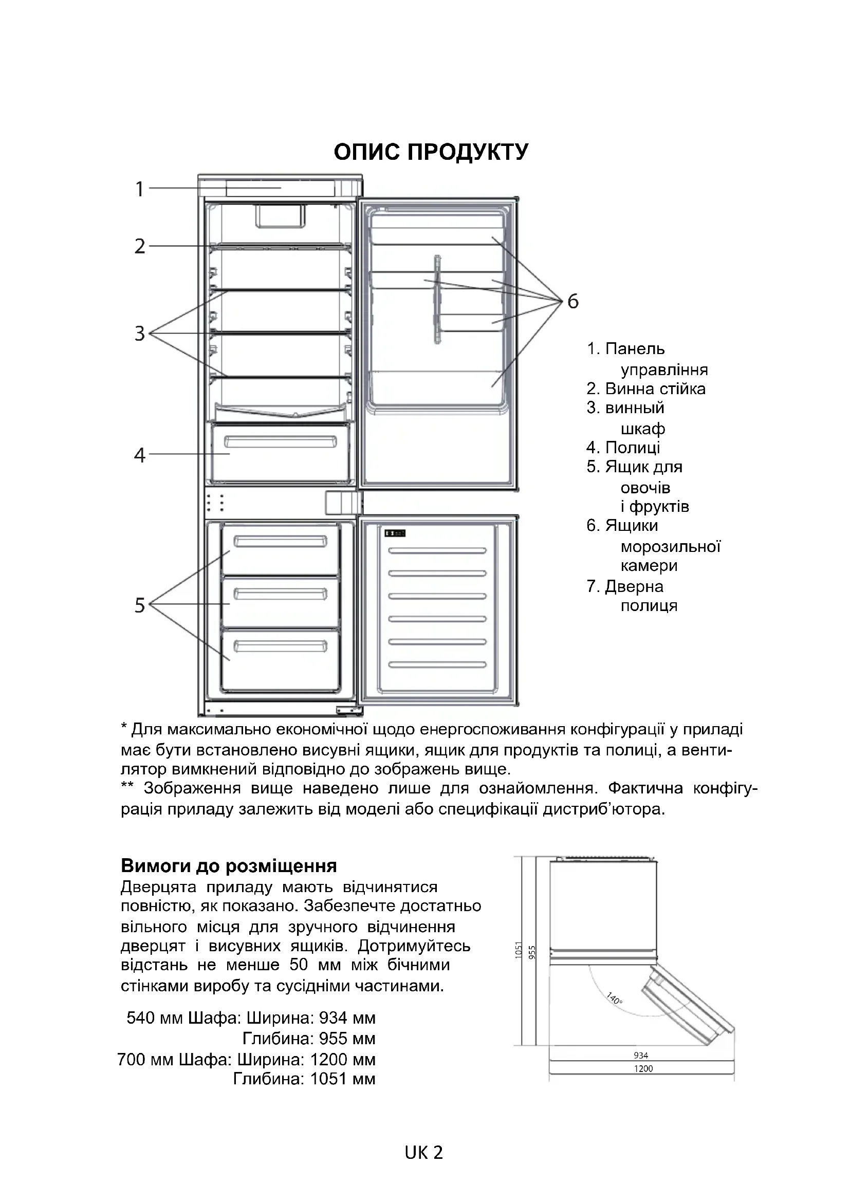 140° 540 мм Шафа: Ширина: 934 мм Глибина: 955 мм 700 мм Шафа: Ширина: 1200 мм Глибина: 1051 мм UK 2