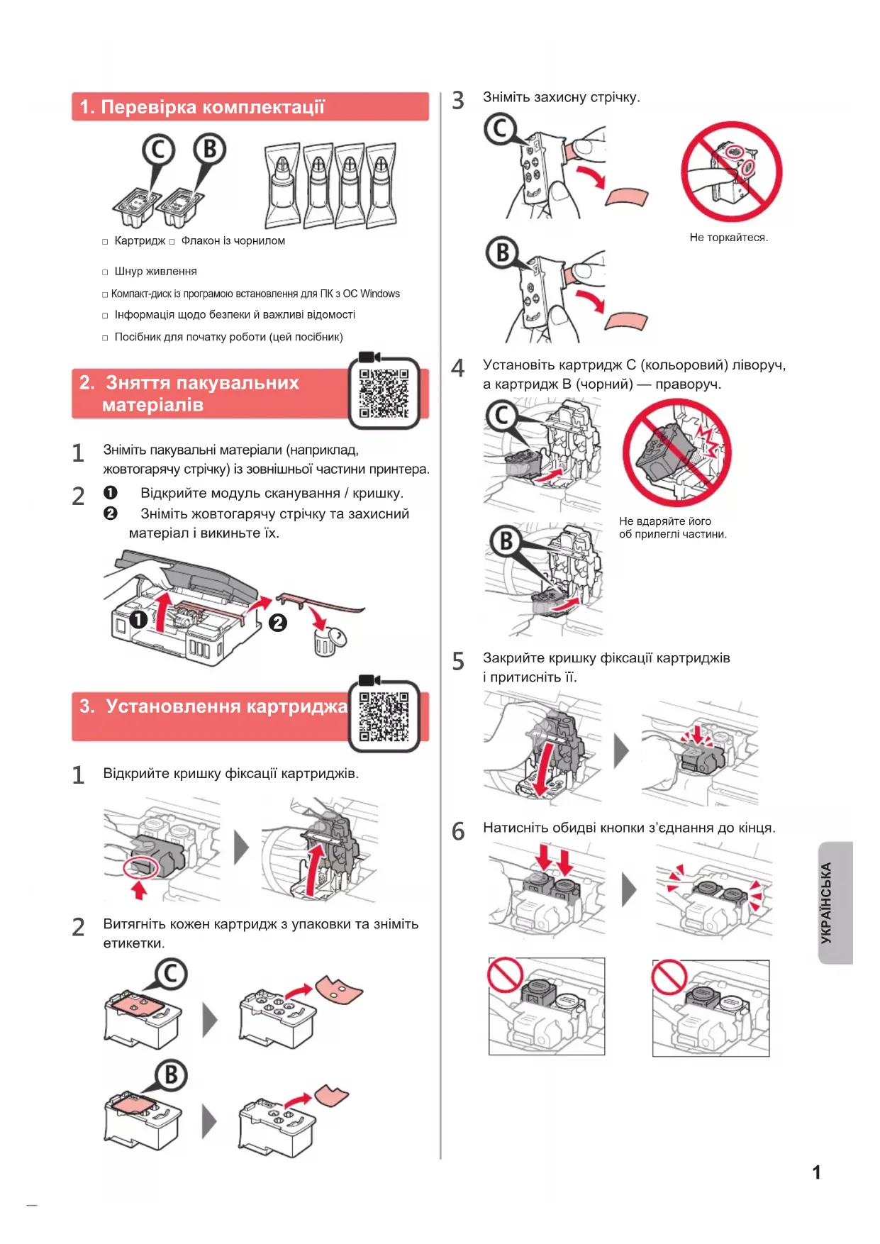 Витягніть кожен картридж з упаковки та зніміть