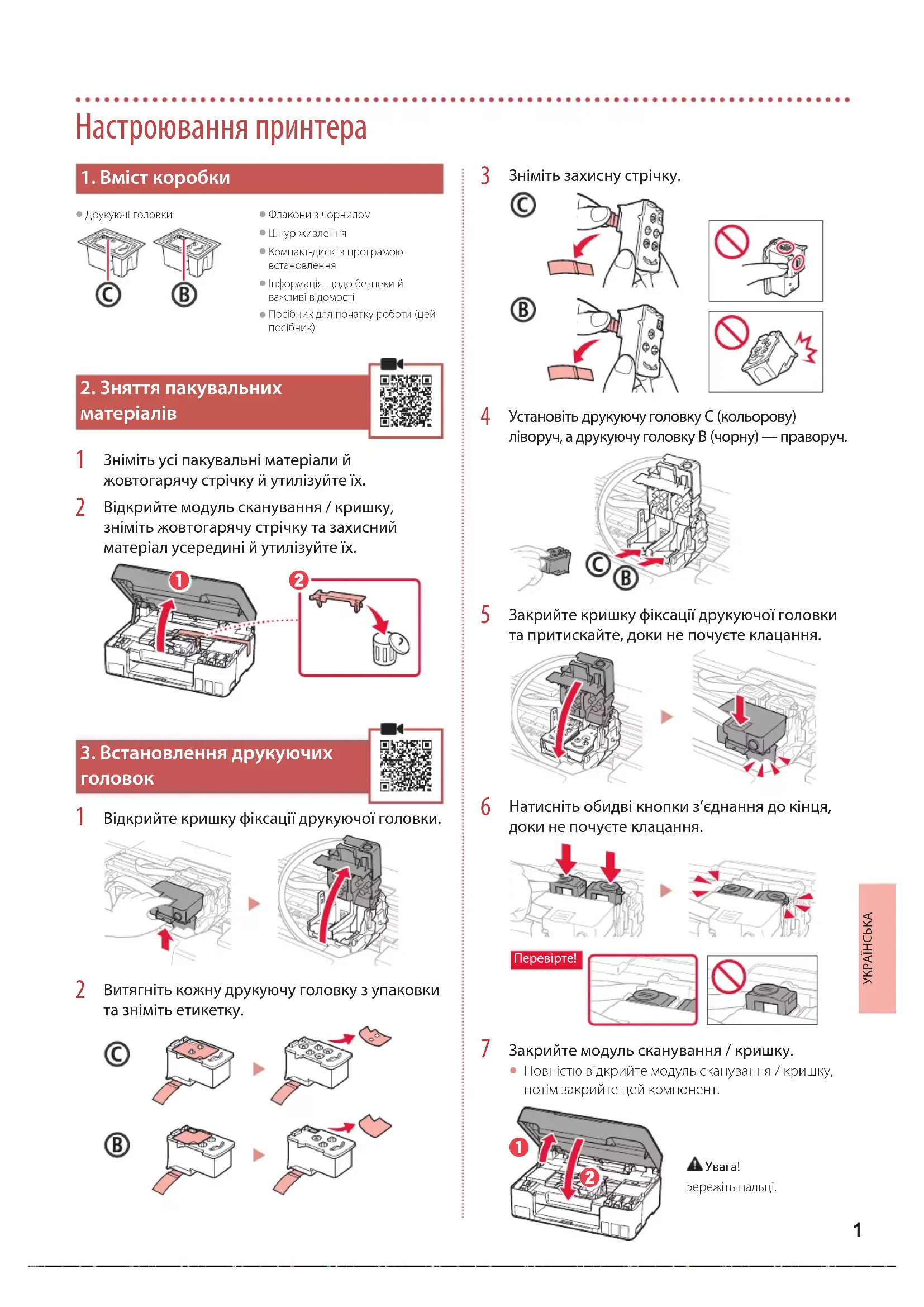 Друкуючі головки встановлено неправильно. «3. Встановлення друкуючих головок» на стор. 1