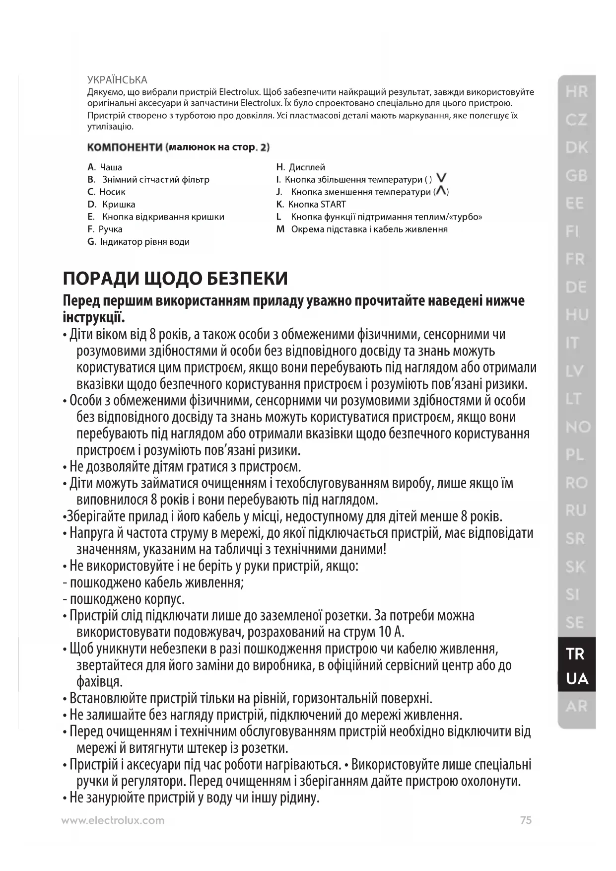 - Не занурюйте пристрій у воду чи іншу рідину. 75www.electrolux.com