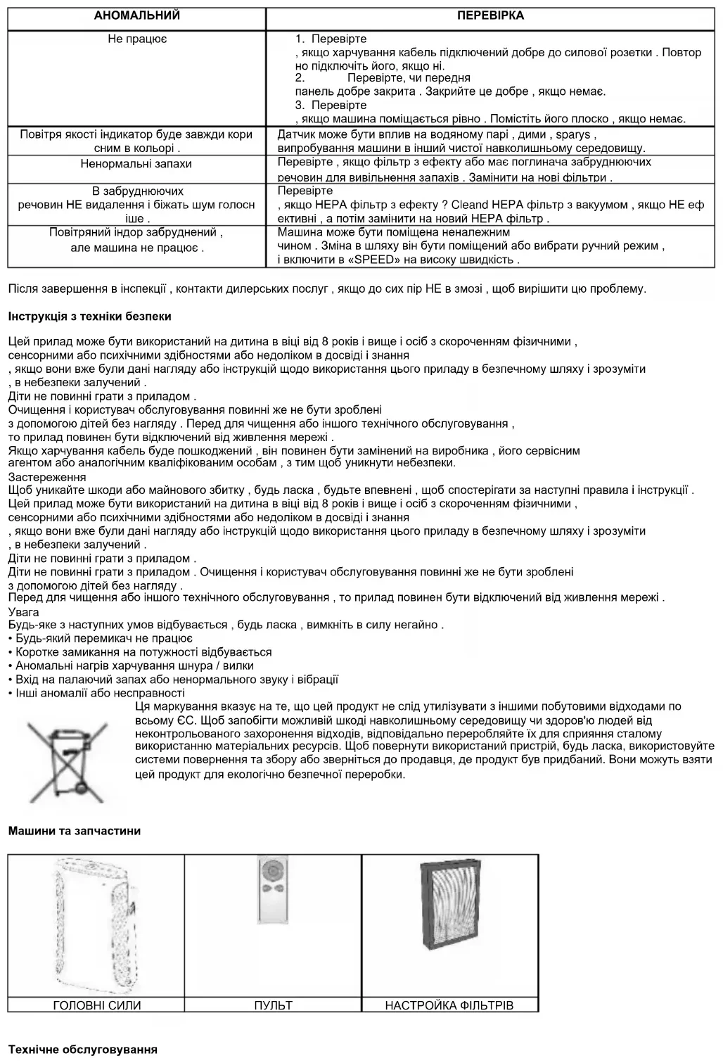 - Інші аномалії або несправності Ця маркування вказує на те, що цей продукт не слід утилізувати з іншими побутовими відходами по всьому ЄС. Щоб запобігти можливій шкоді навколишньому середовищу чи здоров'ю людей від неконтрольованого захоронення відходів, відповідально переробляйте їх для сприяння сталому використанню матеріальних ресурсів. Щоб повернути використаний пристрій, будь ласка, використовуйте системи повернення та збору або зверніться до продавця, де продукт був придбаний. Вони можуть взяти цей продукт для екологічно безпечної переробки. Машини та запчастини