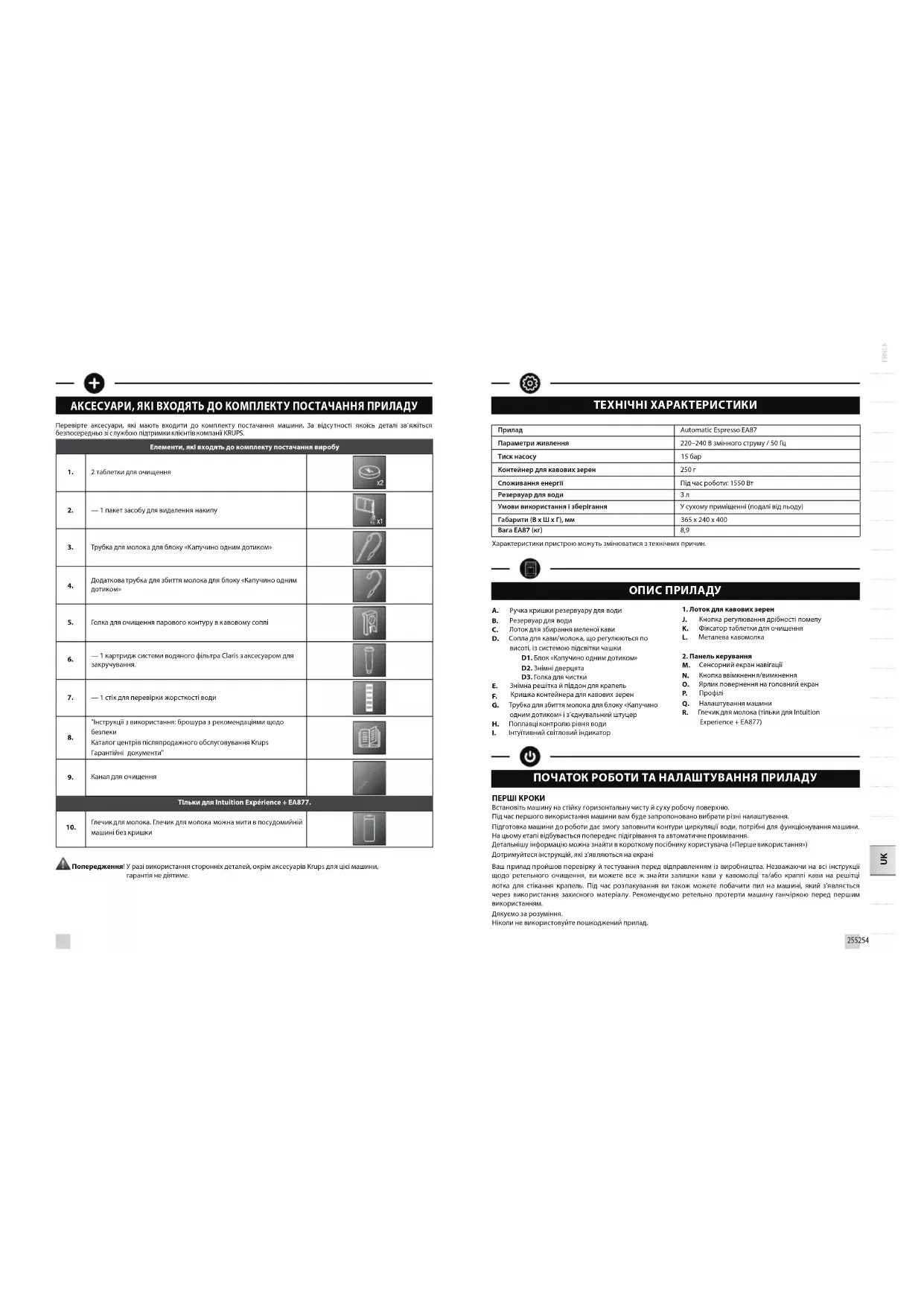 ПОСІБНИК КОРИСТУВАЧА Intuition Experience EA876D KRUPS