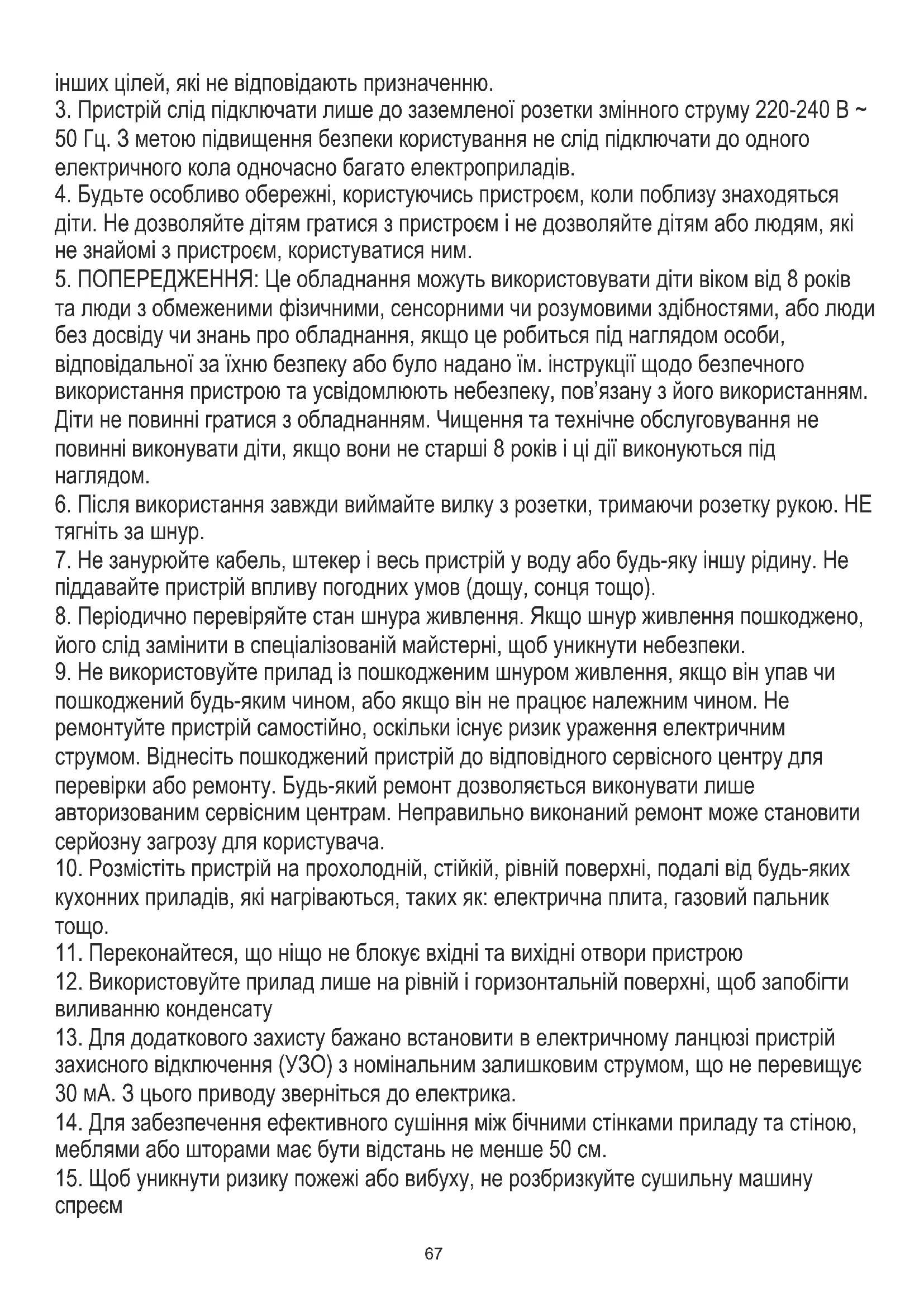 2. Прилад призначений лише для домашнього використання. Не використовуйте для67
