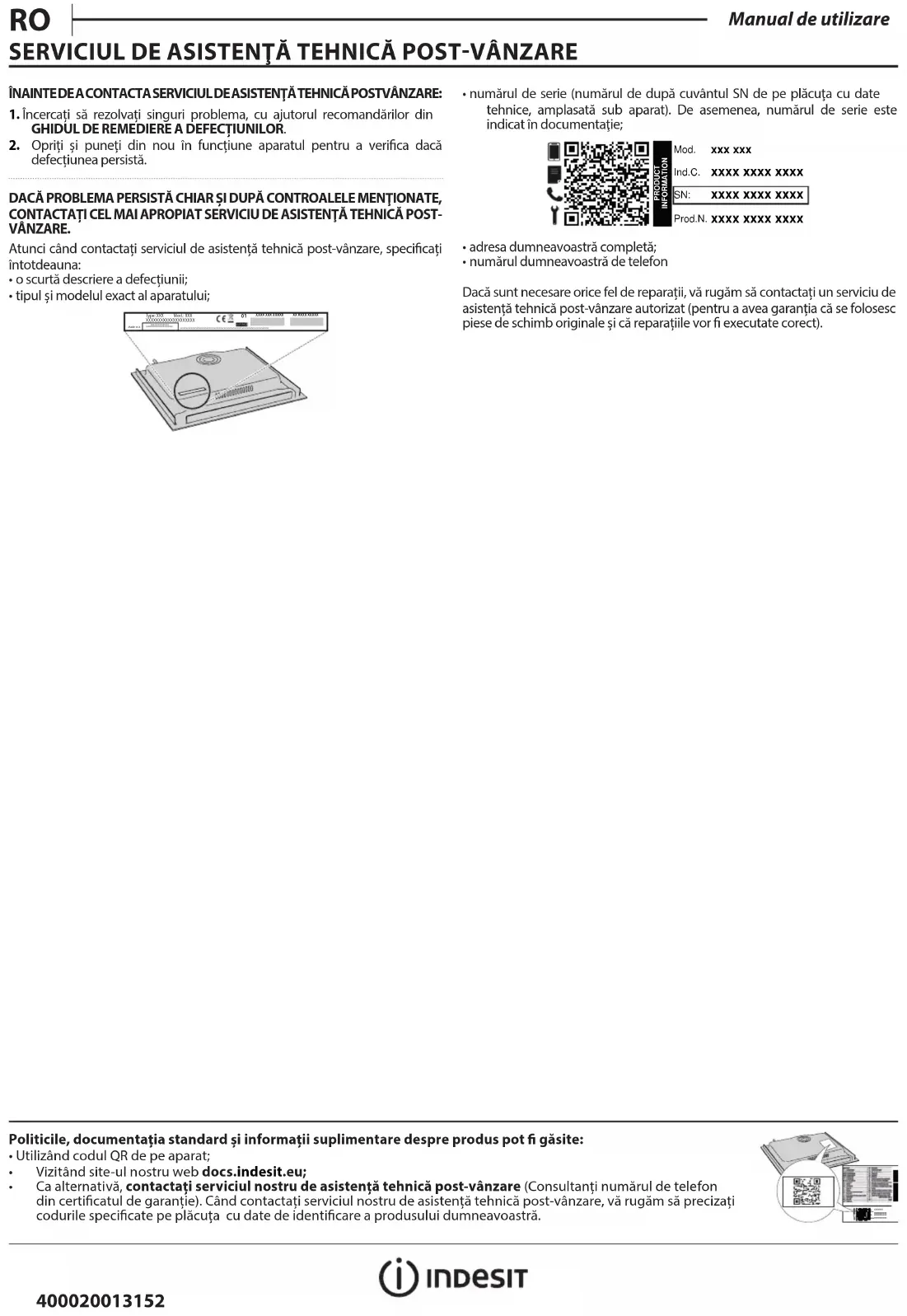 - відвідавши наш веб-сайт docs. indesit.eu;