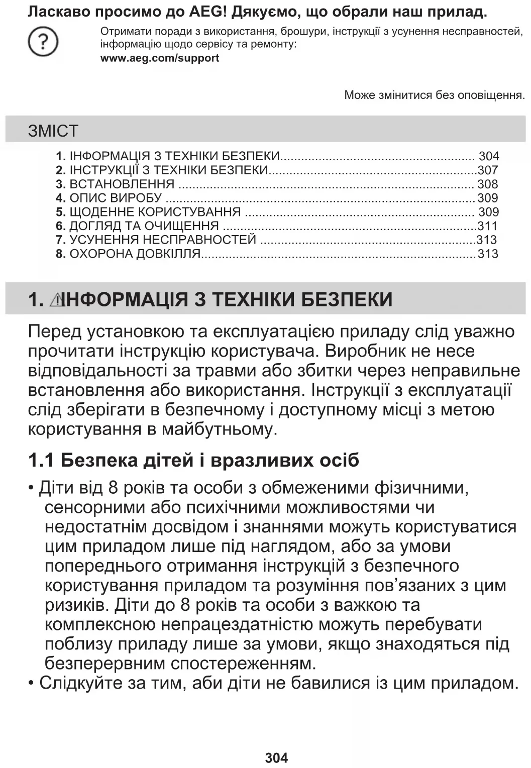 - Слідкуйте за тим, аби діти не бавилися із цим приладом. 304• Тримайте усі пакувальні матеріали подалі від дітей та утилізуйте їх належним чином.