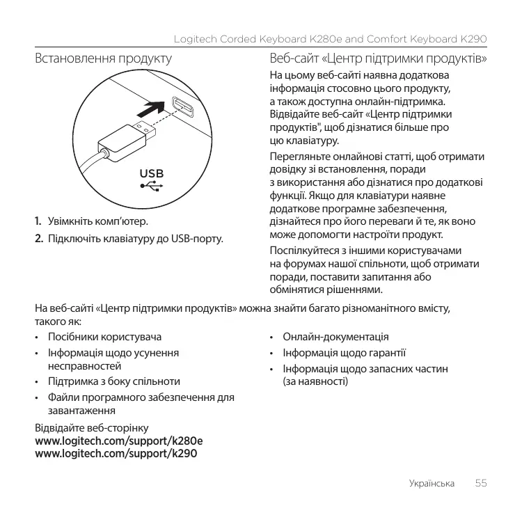 ПОСІБНИК КОРИСТУВАЧА K290 LOGITECH
