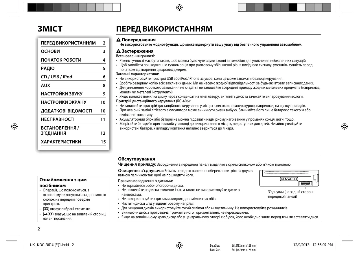 KDC-120RY - автомобільне радіо KENWOOD - Безкоштовний посібник користувача