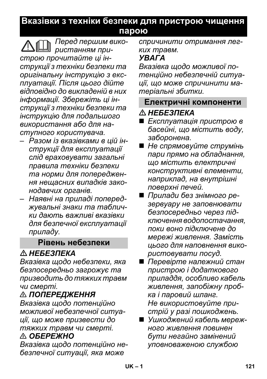 ПОСІБНИК КОРИСТУВАЧА SC1 PREMIUM, SC1 EASY FIX PREMIUM KARCHER