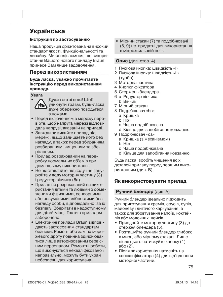 MQ525 - Погружний блендер BRAUN - Безкоштовний посібник користувача