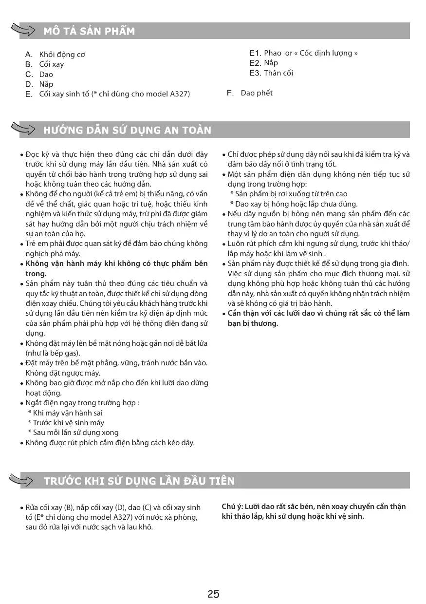 Téléchargez la notice de votre Máy xay đa năng au format PDF gratuitement ! Retrouvez votre notice A327R1 - MOULINEX et reprennez votre appareil électronique en main. Sur cette page sont publiés tous les documents nécessaires à l'utilisation de votre appareil A327R1 de la marque MOULINEX.