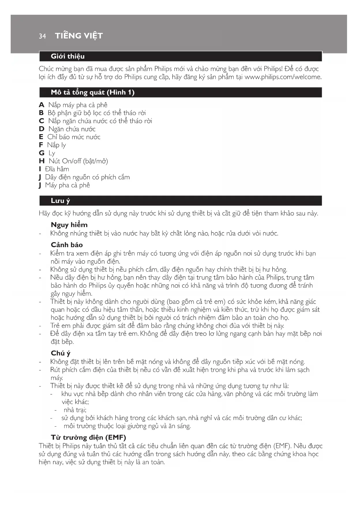 Thiết bị Philips này tuân thủ tất cả các tiêu chuẩn liên quan đến các từ trường điện (EMF). Nếu được